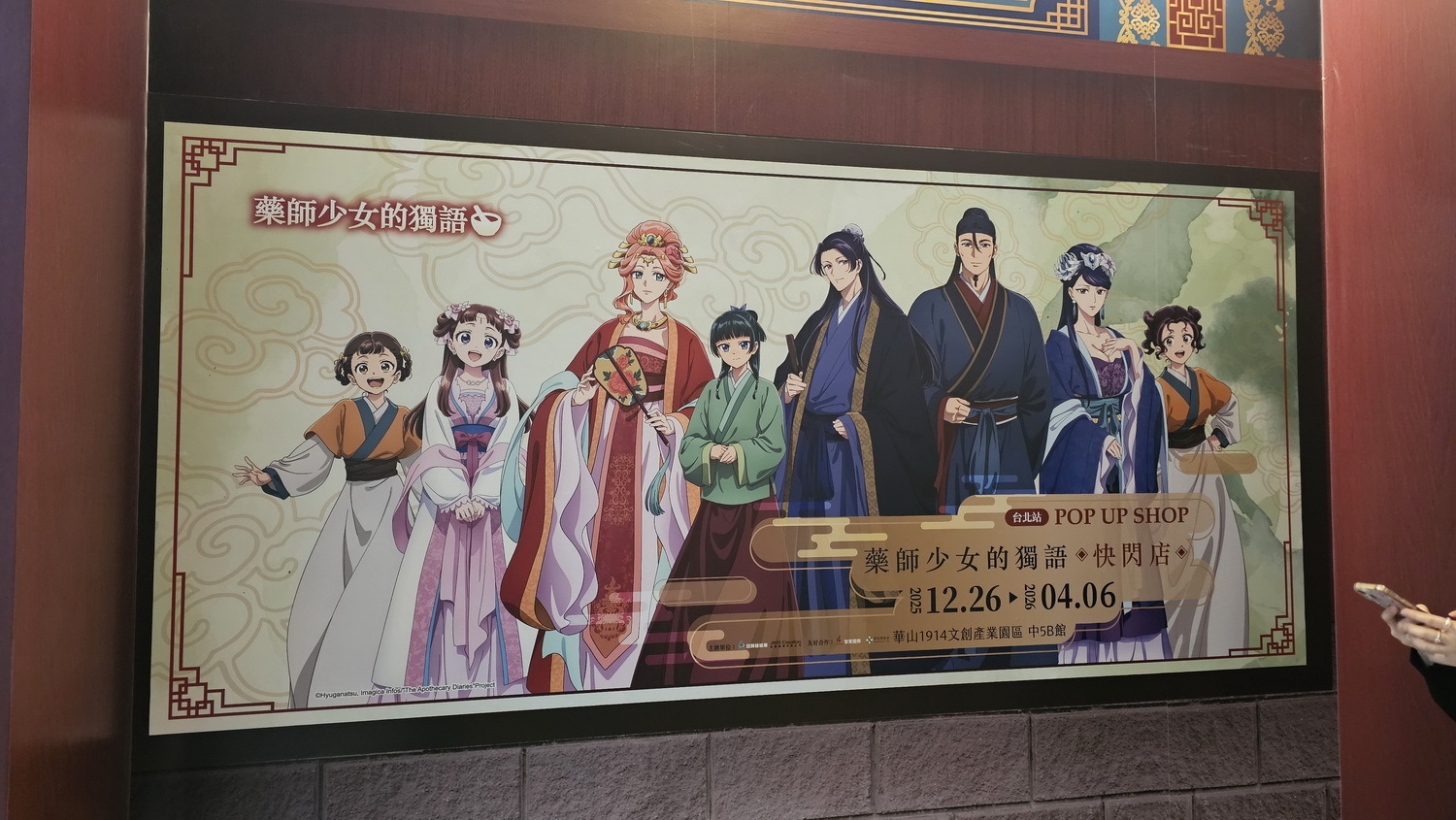 日前在高雄駁二首度登場的《藥師少女的獨語》POP-UP SHOP,即日起正式移師台北華山 1914 文創園區。台北站推出宮廷沉浸式展區與多款全新首賣周邊商品,活動一路至 2026 年 4 月 6 日。本次快閃店由回歸線娛樂與金儀創意聯手主辦... 最后编辑由 不存在的铃喵