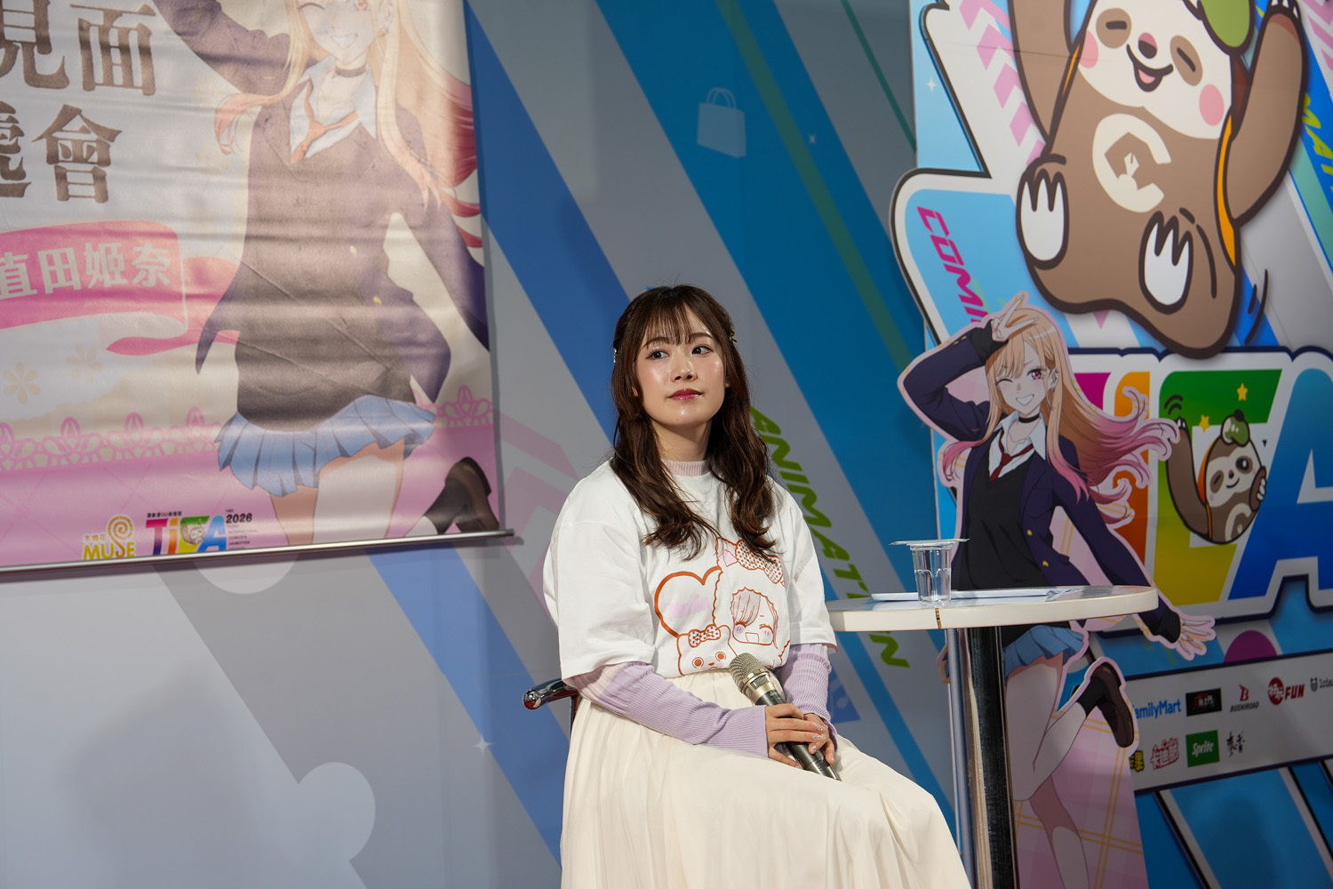 此次见面活动是直田姬奈睽违三年再次来台湾举办活动,直田小姐表示非常开心能跟粉丝在两天的见面会上见面:“有听说名额非常少,能够参加的粉丝都是被选中的人呢!”她说。而《恋上换装娃娃》不仅在台湾,甚至在全世界都受到众多粉丝的喜爱。也询问到直田小姐是否有实际感受到《恋上换装娃娃》在海外的人气,她回答:“在社群网站上面常常收到世界各地的粉丝留言对于海梦的喜爱,也时常在海外参加活动上发现很多人装扮成五条新菜与喜多川海梦,深深感受到全世界粉丝对《恋上换装娃娃》的喜爱。”谈论到台湾美食,直田小姐也分享这次在台湾印象特别深刻的美食是流沙包,因为太好吃了一个不小心就连吃了两颗,希望还有机会能吃到。