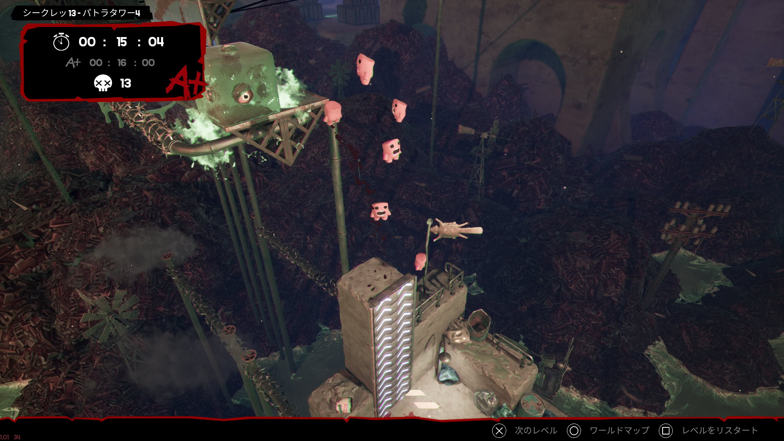 总体而言,虽然 3D 化刷新了外观与操作感,但关卡设计的思想给人一种深厚继承了初代《Super Meat Boy》的印象。虽然难度高,但无理取闹的感觉很淡,是能让人感受到扎实攻略成就感的设计。通关后仍有缩短时间的目标,随时能轻松再次挑战的设计也令人印象深刻。若硬要举出缺点,大概是玩得太投入可能会让手腕发出哀鸣吧。