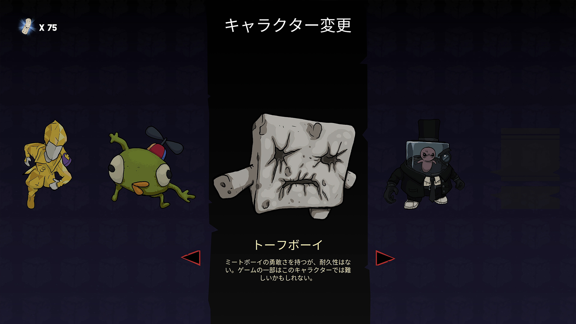 隐藏角色豆腐男孩(Tofu Boy)的跳跃力比肉肉男孩低。要用他挑战难关,需要相应的技术与觉悟