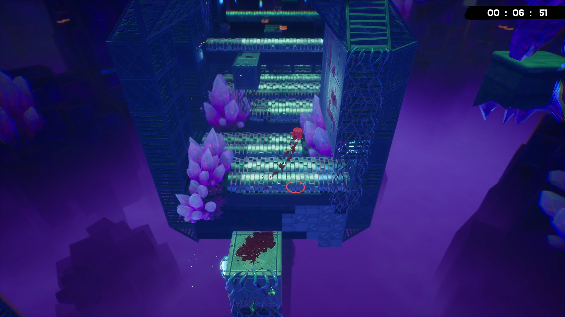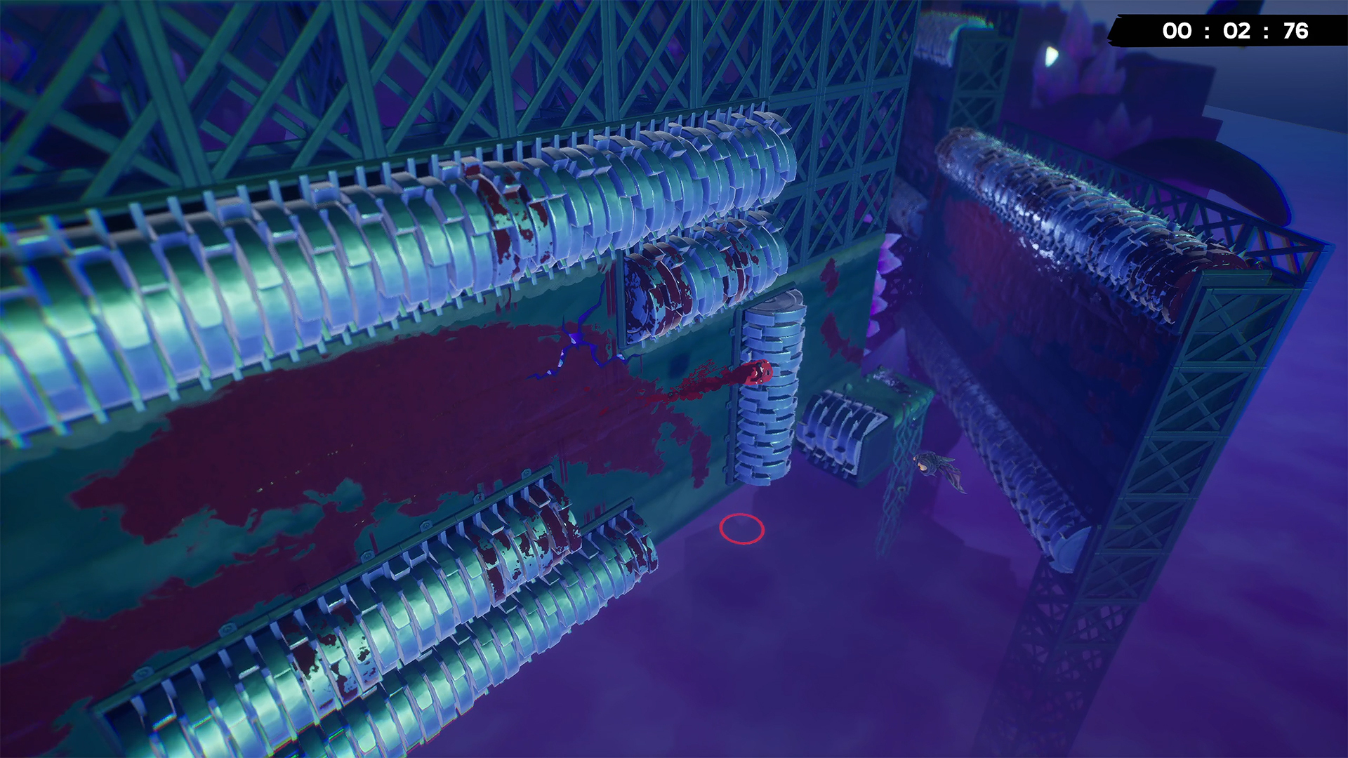此外,这些足迹不仅仅是装饰。在反复挑战与失败的过程中,也能作为视觉化移动路线的“路标”。特别是在难度较高的关卡,肉汁痕迹有时会填满整个区域。不过,本作的重试节奏非常快,设计上不易让玩家感到失败的压力。