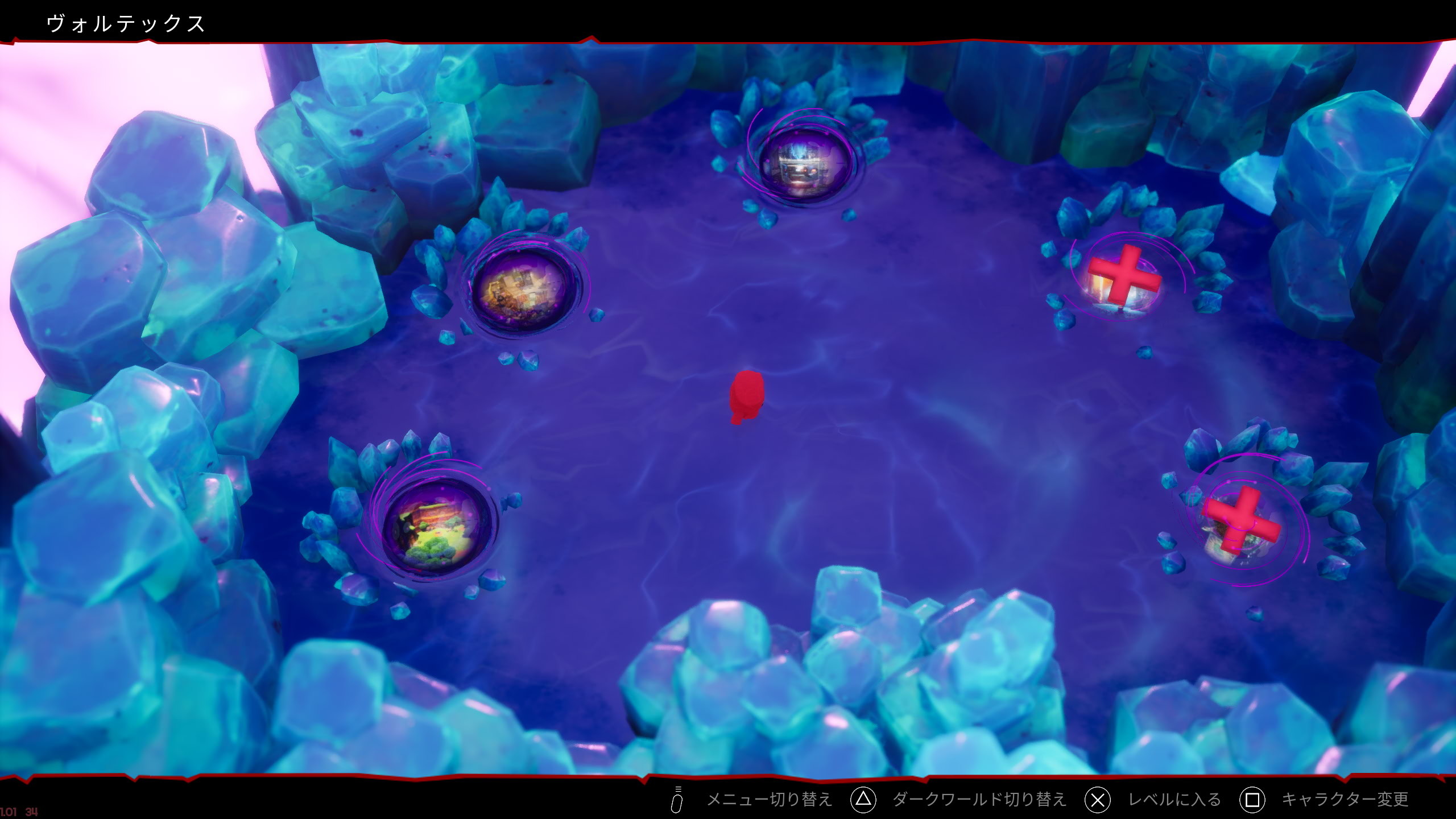 本作准备了主题各异的 5 个世界,开启新世界后,可透过名为“涡流(Vortex)”的传送点往返。每个世界包含 15 个关卡与 1 场头目战,头目战的内容也各不相同。例如在第一个世界中,是以一边躲避头目攻击一边前进的形式展开;而在第二个世界中,则是在有限的空间内抵御头目多样攻击的战斗。