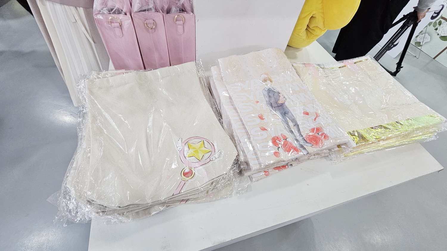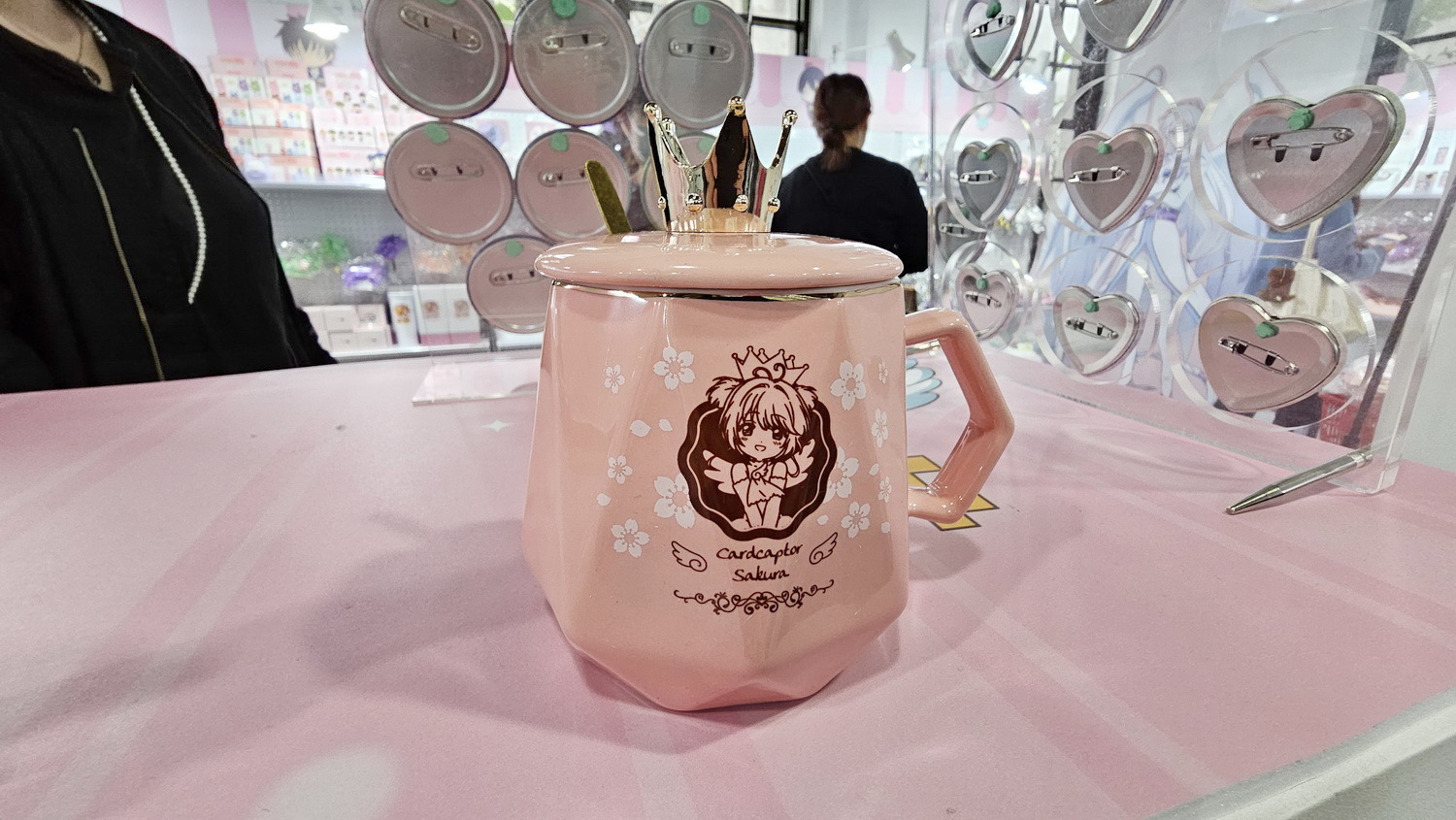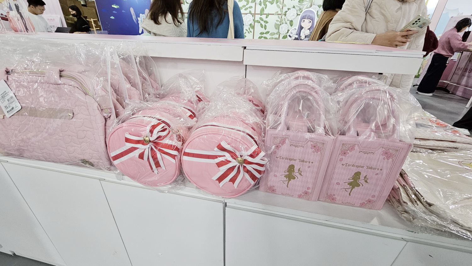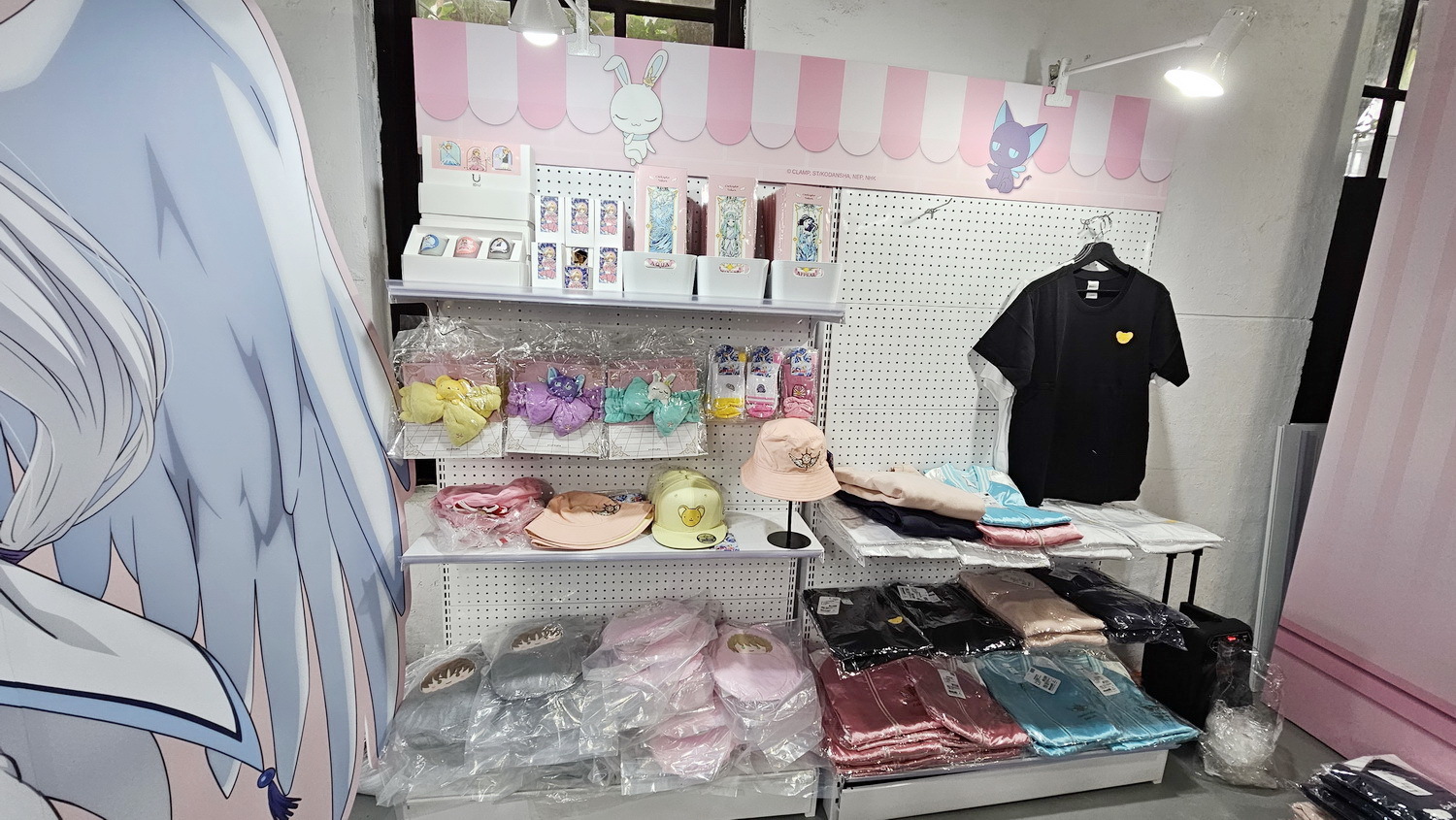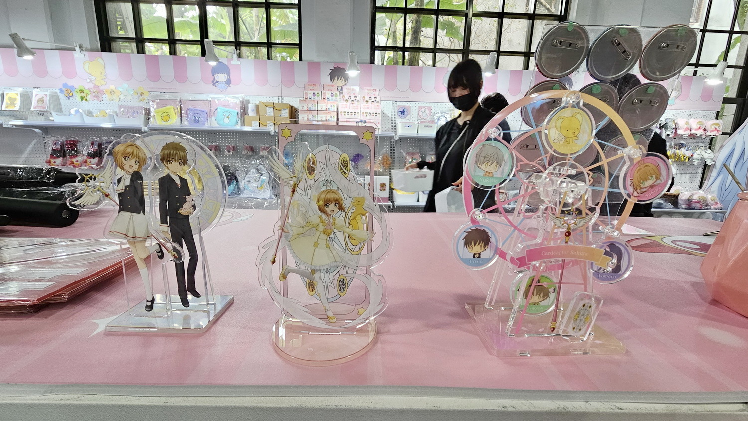 周边部分也推出多款限定商品,包含爱心造型盲抽徽章(10 款)、可转动的摩天轮造型压克力立牌、小可卡套、A4 横式资料夹(4 款配色,搭配小樱不同战斗服)、银箔材质邮票造型明信片,以及透纱刺绣 T 恤、短版 T 恤与多款折叠购物袋。凡于快闪店内消费满 999 元,即可以 129元 加价购青蛙装小可造型大纸袋。