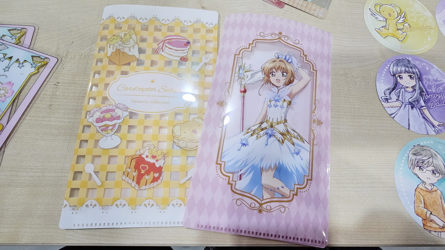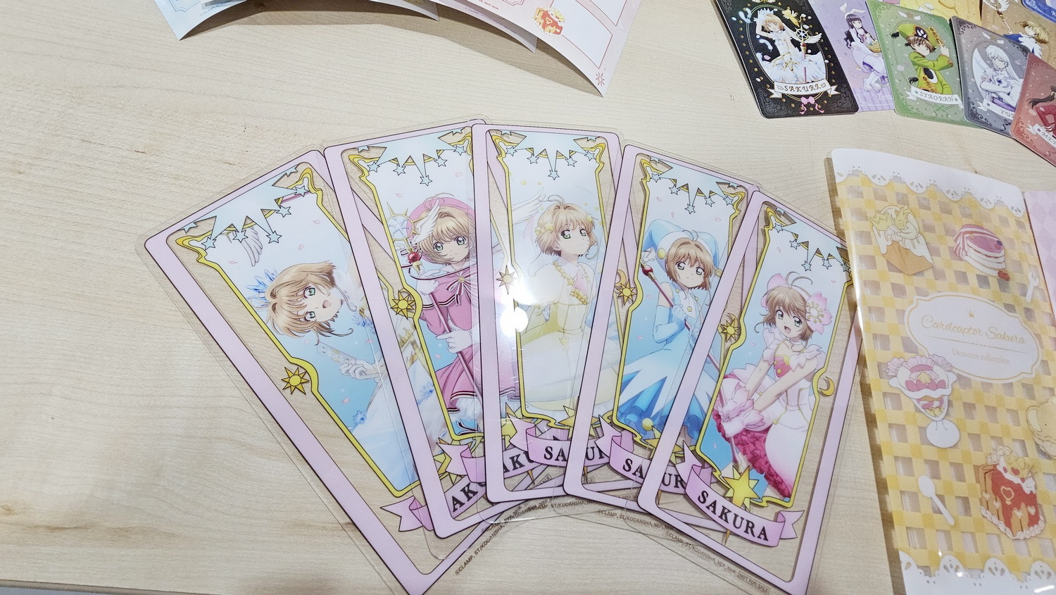 本次快闪店同步推出限定满额赠系列,将小樱的经典造型与透明牌意象结合,打造轻透、细致的收藏单品。满额赠之一为压克力透明牌,共推出五款设计,精选小樱多套经典服装造型,搭配透明牌轮廓与清透材质呈现。另一款满额赠为 直式票卡夹,共两款设计。其中一款以小樱两套可爱服装为主视觉,展现轻盈氛围;另一款则为甜点主题款式,以嫩黄色为基调,营造温柔可爱的日系甜点风格。