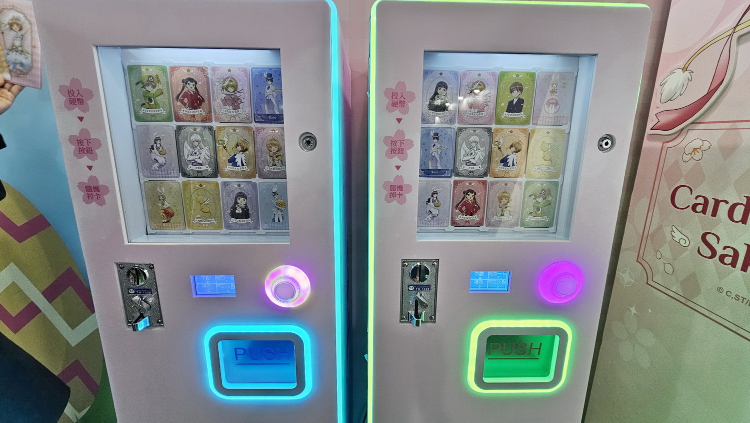 本次快闪店特别推出全新设计的角色小卡抽卡机,作为活动的收藏品全面升级登场。全系列共 16 款角色小卡,卡面设计结合春季氛围与透明牌篇世界观,并加入 季节限定的复活节绘图。小卡全数采用升级版闪亮材质制作,卡面会随光线流动呈现细致光泽,不同角度下显现层层光影变化。其中更特别设计隐藏版“夜色小樱”卡,以深色基调搭配烫金细节呈现,隐藏版并不标示于卡款列表中,仅能透过实际抽取才能遇见,是专为收藏者准备的惊喜存在。