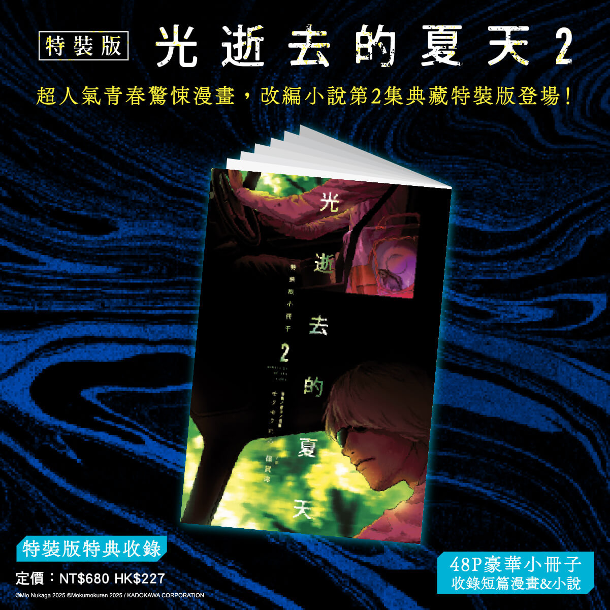 由日本新锐漫画家モクモクれん创作、以细腻笔触勾勒深山禁忌与少年情谊的《光逝去的夏天》,其改编小说版正式宣布将于今年五月推出续篇小说第二集。台湾角川于今日同步公开“特装版”特典情报,并即日起展开全台实体通路与网路书店的限时事前预购。