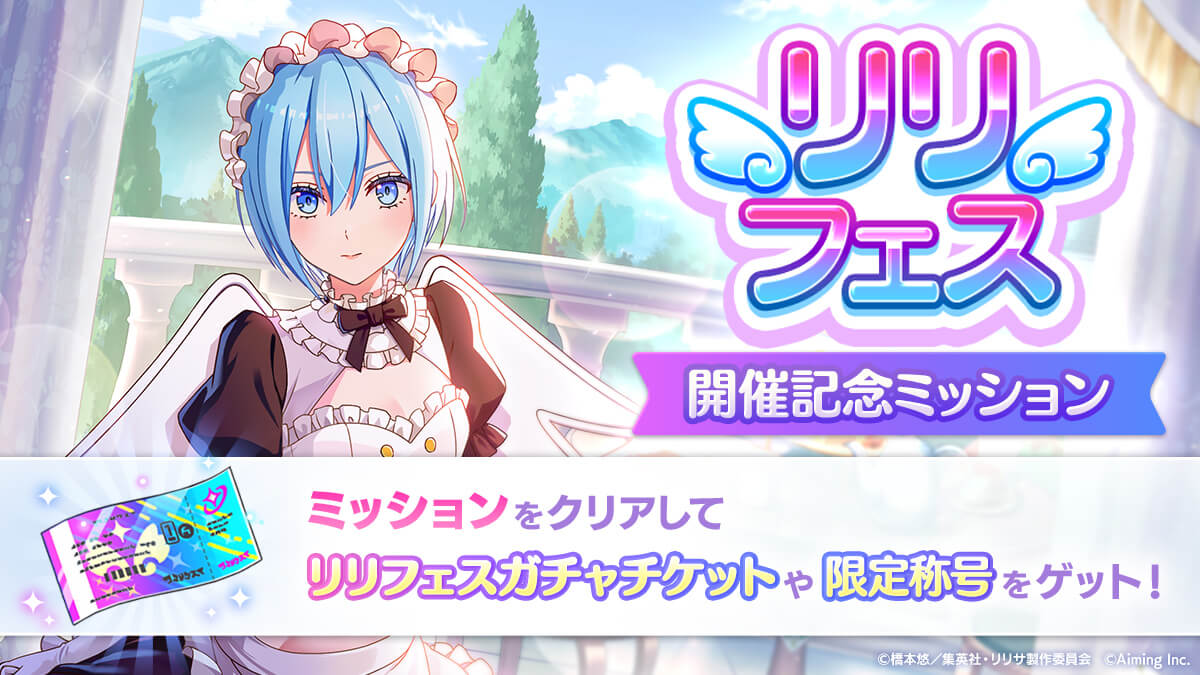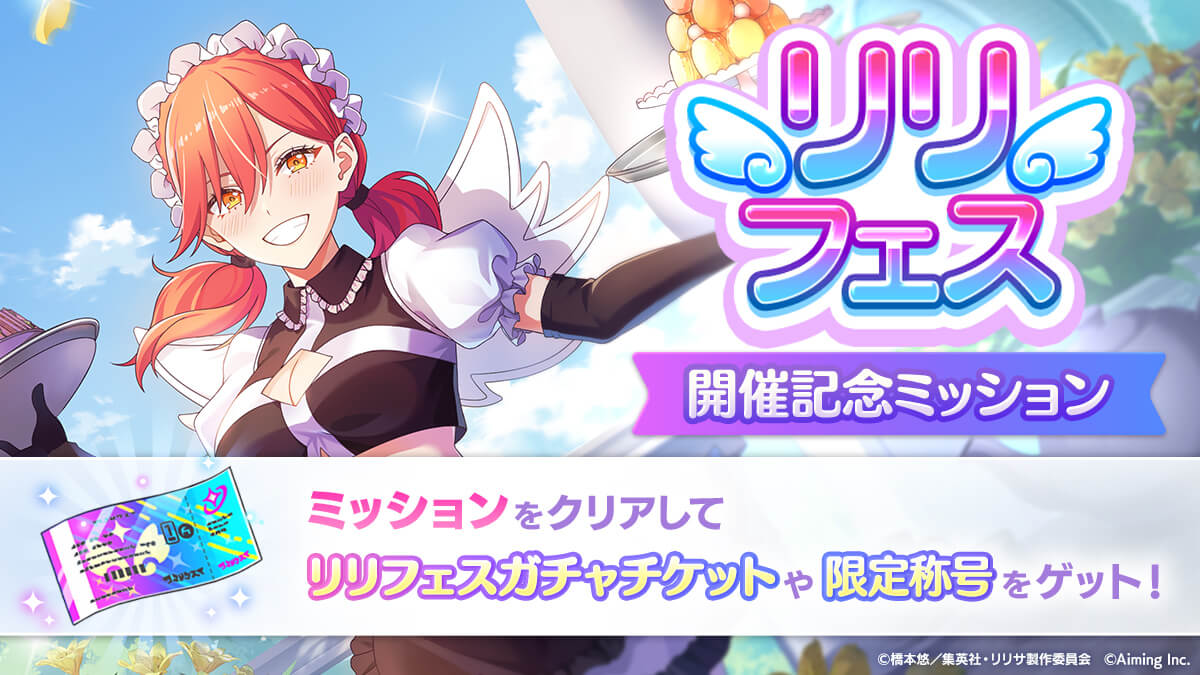 为纪念理理庆典转蛋角色【静かに寄り添って】诺基艾露(女仆)诺诺亚&【まばゆく満ちて】亚莉艾露(女仆)喜咲亚理亚登场,决定实施理理庆典举办纪念任务,期限内完成任务可获得提升数值限定称号“【静かに寄り添って】诺基艾露(女仆)诺诺亚”/“【まばゆく満ちて】亚莉艾露(女仆)喜咲亚理亚”、与理理庆典转蛋券。
