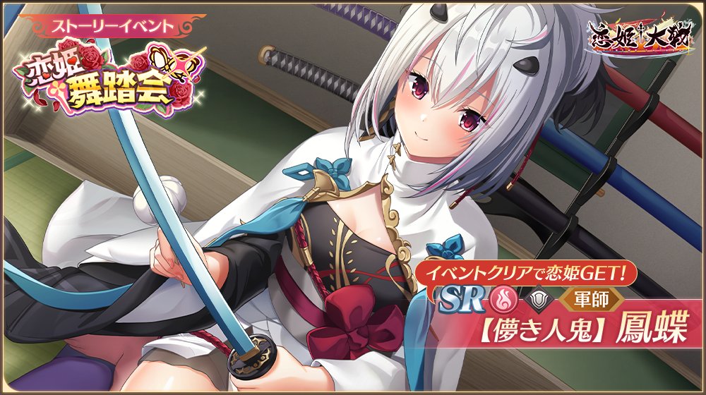 由NEXTON授權、合同会社EXNOA開發營運的《戀姬†大戰》,在3月27日追加主線第7章「關東平定之後」。同日,舉辦新故事活動「戀姬†舞踏會」,玩家可透過活動獲得限定SR火屬性防盾隊軍師角色「【虛幻人鬼】鳳蝶」,活動時間為3月27日至4月... 最后编辑由 不存在的铃喵