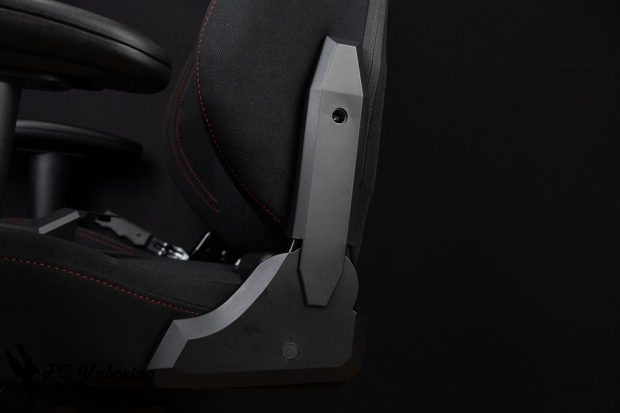 2D 扶手可以左右摆头以及上下调整,上下透过按压固定键可以阶段式调整扶手高度,而整个扶手的左右水平移动距离,则可以透过固定锁孔来微调,但需要在安装过程中就先抓一下习惯距离,不然未来要调整会比较麻烦一些。