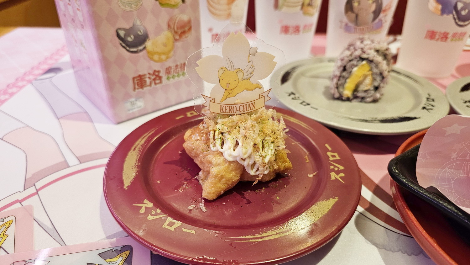 本次联名菜单以《库洛魔法使 透明牌篇》中深受喜爱的人气角色与充满幻想色彩的透明牌元素为灵感,精心研发出 4 款限定联名餐点,每一道美食不仅呼应角色特质,更在造型与风味上创造出专属体验。“小樱幸福草莓蛋糕(140 元)”将粉红草莓慕斯、草莓库利结合海绵蛋糕层,搭配柠檬馅夹层,表现小樱温柔甜美的角色形象;“小狼烧卖海苔包(60 元)”以烧卖元素为主体,呼应角色背景,外层配上海苔增添鲜香;“知世鳗鱼玉子紫苏卷(60 元)”经紫苏粉调味的淡紫色寿司饭依序包入玉子烧、鳗鱼,细腻层次呈现知世温柔细心的一面。“小可章鱼烧风豆皮寿司(40 元)”以“小可”喜爱章鱼烧,将豆皮寿司加入章鱼丁、章鱼烧酱、美乃滋与青海苔粉,重现小可最爱的好滋味。