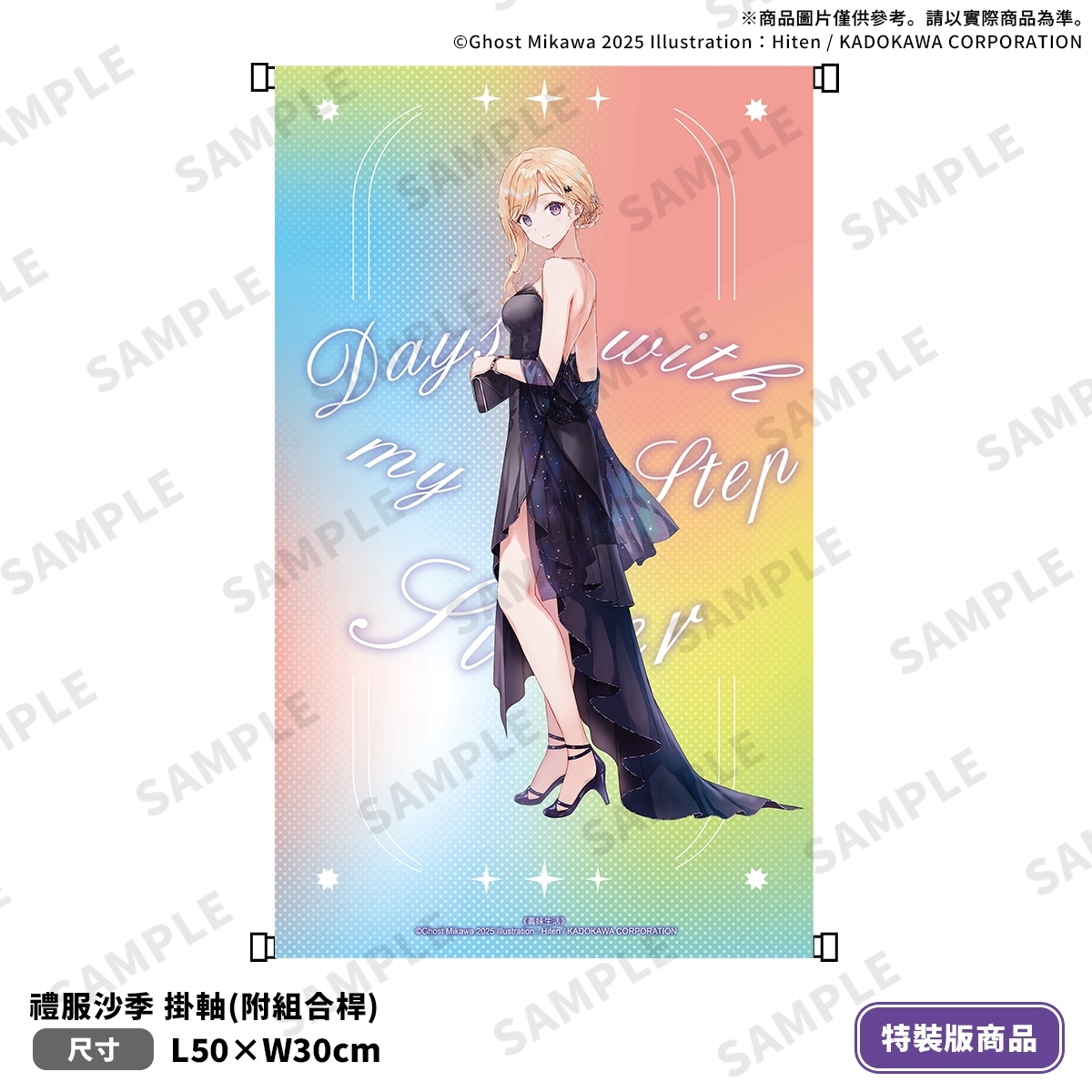 《义妹生活 another days》特装版以身穿优雅黑色晚礼服、展露迷人姿态的沙季作为主视觉,呈现出有别于日常的成熟与高贵气质。本次特装版收录包含:“本集小说 With 特别版书衣”、展现华丽气场的“礼服沙季 挂轴(附组合杆)”,以及带点忧郁唯美氛围的“雨中沙季 压克力钥匙圈”,特装版预计自 4 月 7 日起开放事前预购至 4 月 21 日(二)23:59 为止。