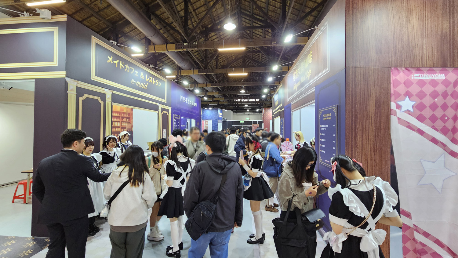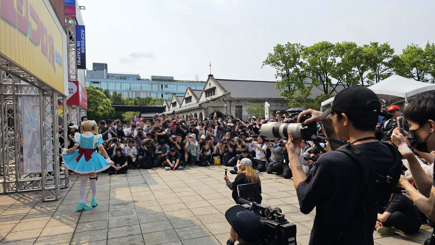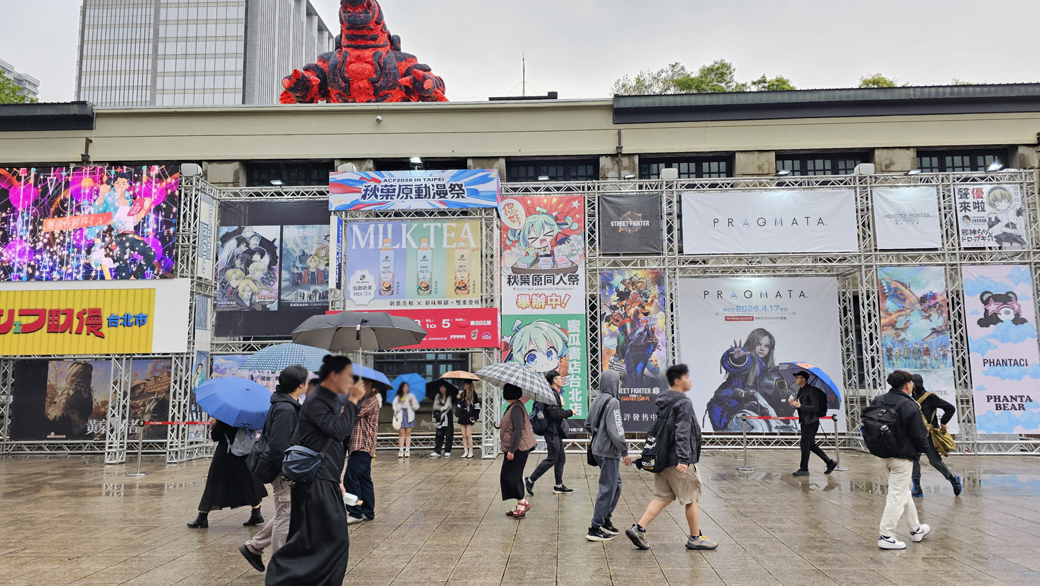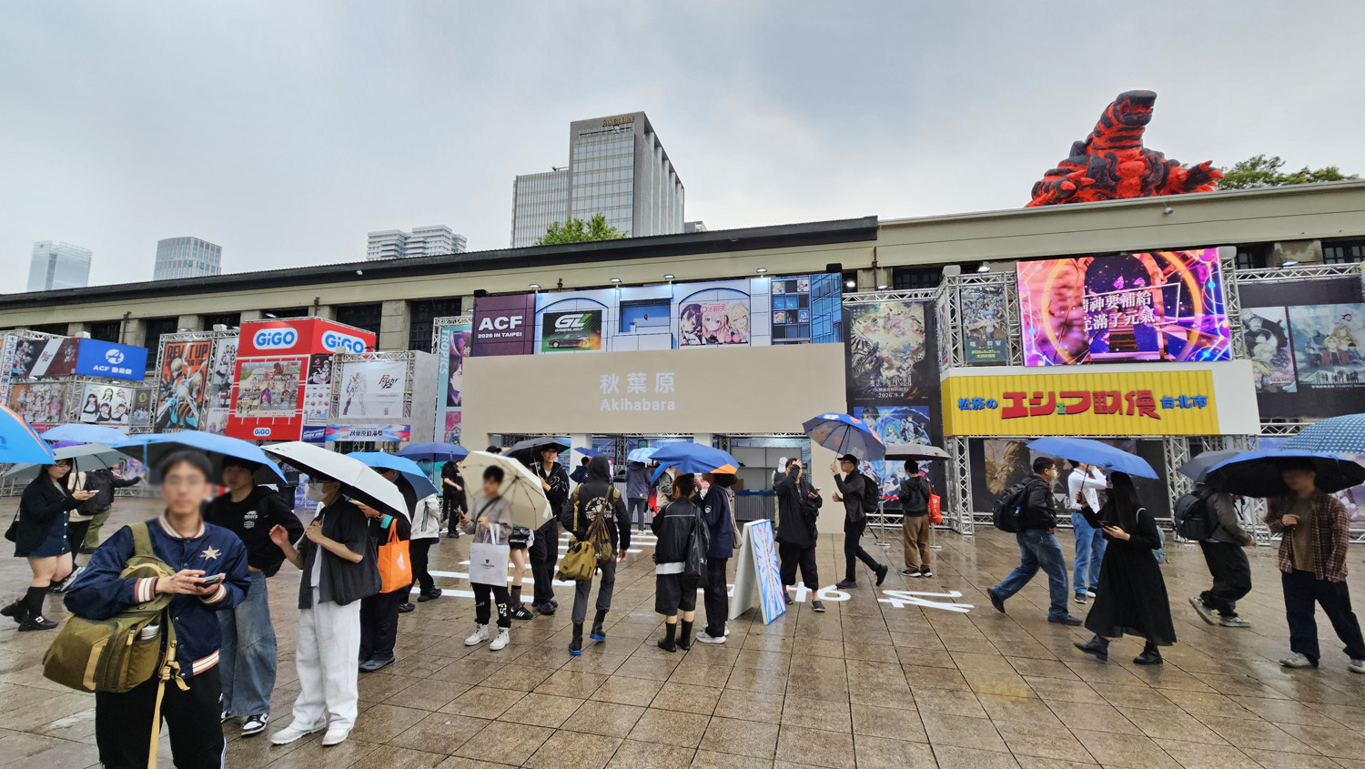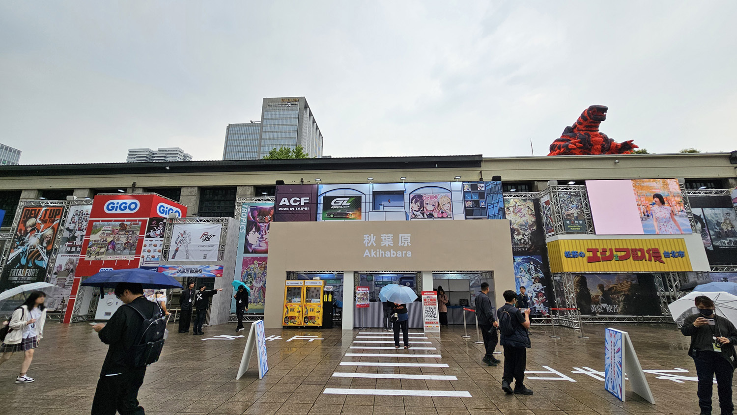 集结动漫、Cosplay、游戏、IP、演唱会的“2026A.C.F 秋叶原动漫祭”自今日(4/3)起在台北松烟文创园区开幕,形象大使 Enako 以代表四仓女仆区的“雨夜红叶”女仆造型登台,现场包含 EVA 痛车、火山怪兽“大黑”以及 1:1 的秋叶原街道还原等,相当热闹。