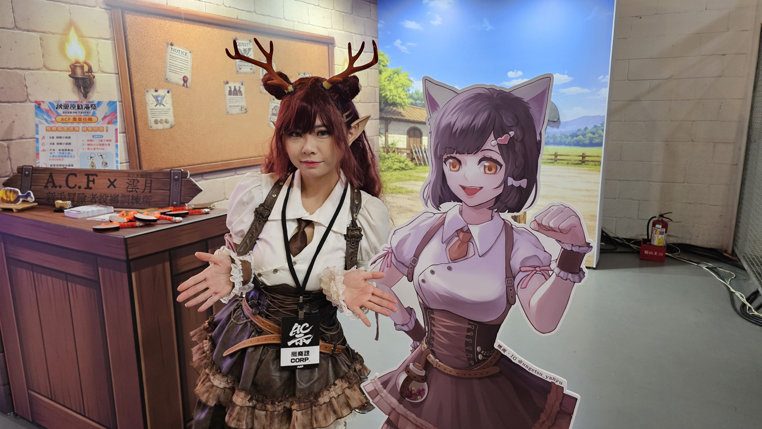 创角数位执行长罗际明则提到团队本著原创的筑梦精神,打造出一个原创 IP《奇点特攻 Point42(赤兔)》,并在秋叶原的官方合作下,把秋叶原给搬到台北来呈现给大家。活动大使 Enako 也带领著另外四个 A.C.F 原创使者登场:分别为二仓潮品区“Wonder Knight 幻夜骑士”(Coser 究极)、三仓电玩区的“Alpha 起源玩家”(Coser Hiko)、五仓“舞台区”则是“KITSUNEKON 宙狐”(Coser 阿兆),以及北向同人馆的“Vector 向量绘师”(女星焦曼婷),至于四仓女仆区的“雨夜红叶”则是 2026A.C.F 秋叶原动漫祭形象大使 Coser Enako 来诠释。主办单位表示,由于女仆文化是秋叶原最具代表性的元素之一,因此这个角色代表的就是整个 ACG 文化的原点。