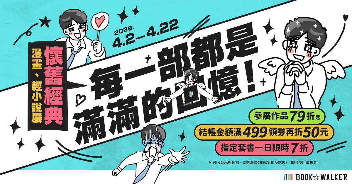 电子书平台 BOOK☆WALKER 推出“每一部都是满满的回忆!怀旧经典漫画、轻小说作品展”。即日起至 4 月 22 日,参展作品可享指定优惠。此外,配合新番开播,官方也推出了“新番开追!春季新番&上一季人气作品书展”以及“随兴旅行!BOOK☆WALKER 日本圣地巡礼~抽卡决定旅程”活动。