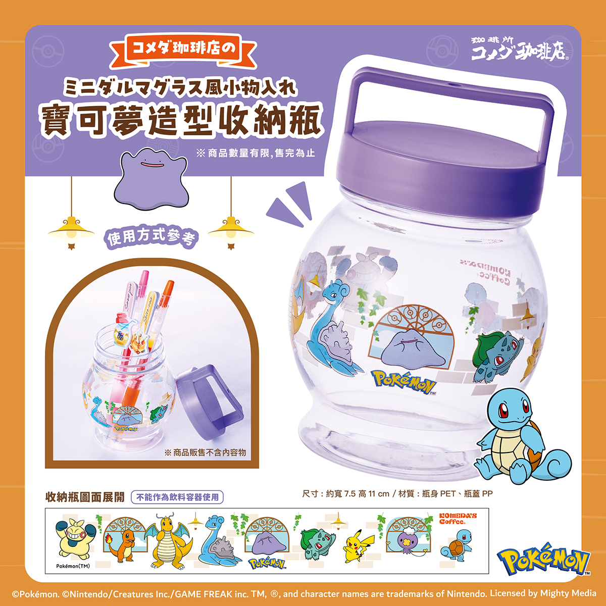 台灣客美多宣布,將於 4 月 8 日(三)起推出「和寶可夢同盟!」期間限定菜單,品項包含「快龍 卡士達布丁醬冰與火」、「百變怪 明太子醬蝦排堡」、「飄飄球 起司球」等,點餐點隨機贈送一個寶可夢造型吊飾;另有寶可夢造型收納瓶,亦將推出可抽選「... 最后编辑由 不存在的铃喵