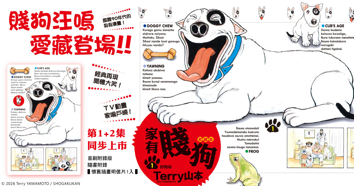 《家有贱狗 爱藏版》第 1 集、第 2 集首刷附录版已于 4 月 10 日同步上市。本次东立出版社推出的爱藏版预计共 11 集,每集随书附录怀旧插画明信片 1 入。