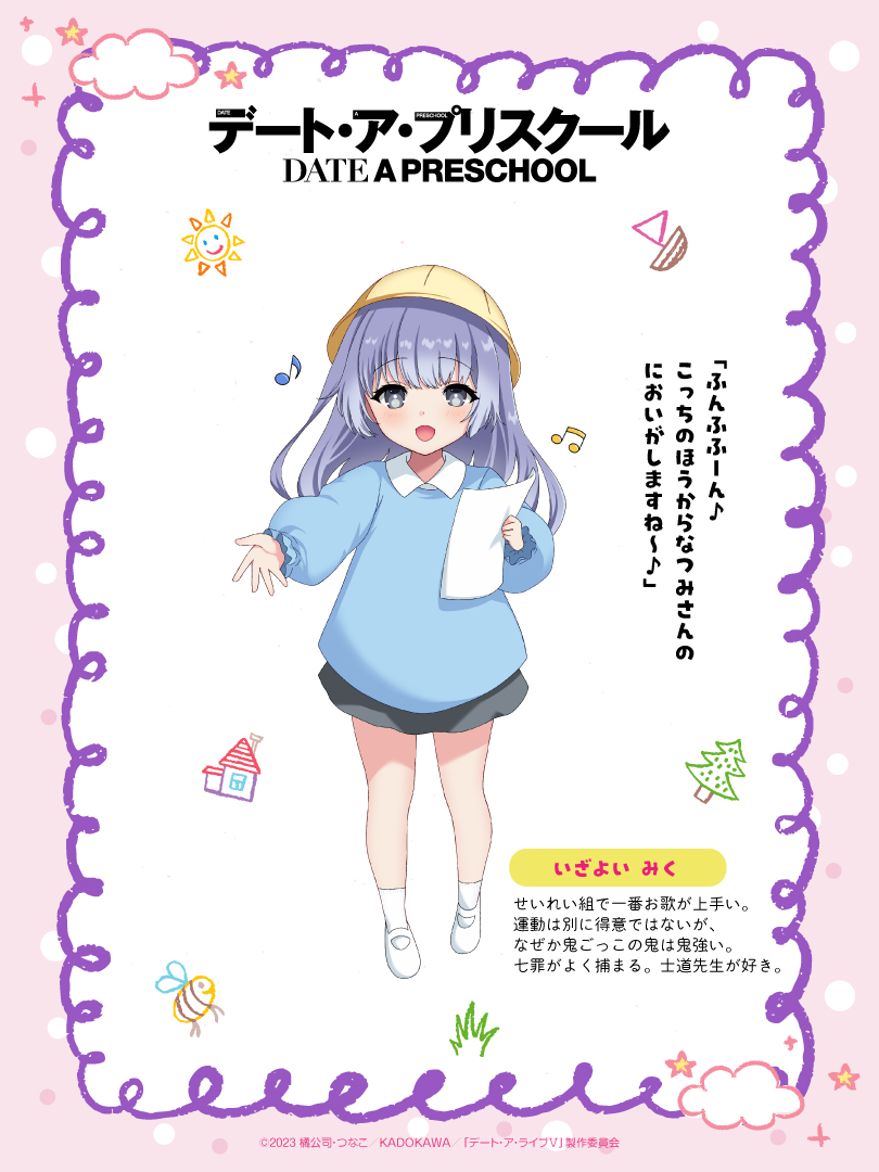 这次所公布的新系列《约会幼稚园 DATE A PRESCHOOL》,是变成幼稚园儿童之姿的 12 位精灵们。相关角色介绍和角色留言,都是由原作者.橘公司老师所负责。如对各角色们的介绍文有兴趣的,可自行点选下方图片进行观看。