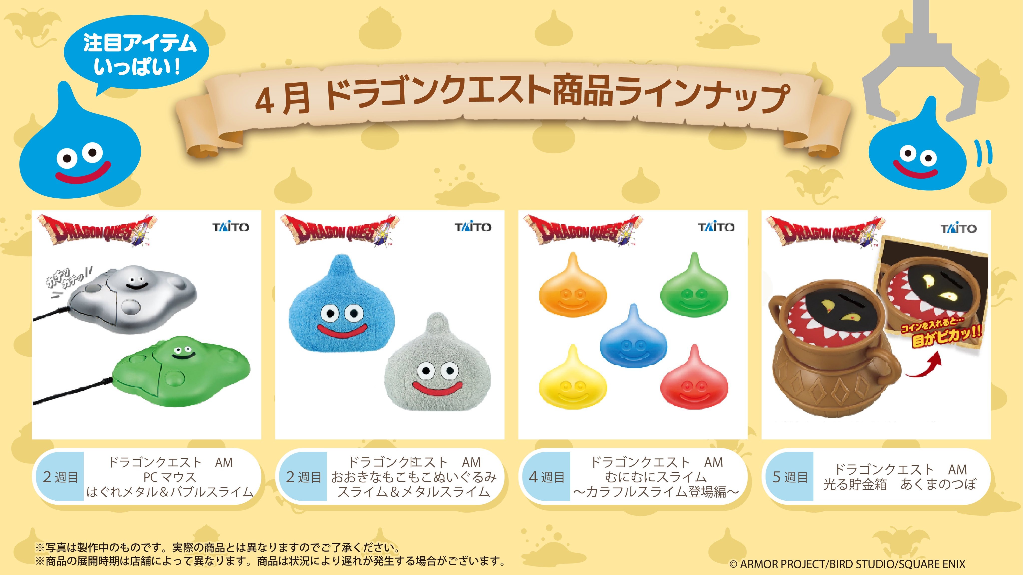 TAITO 今日(4/8)宣布,将于 4 月 11 日起在日本推出夹娃娃机奖品“勇者斗恶龙 AM PC 滑鼠勇斗滑鼠 流浪金属史莱姆&泡沫史莱姆(ドラゴンクエスト AM PCマウス はぐれメタル&バブルスライム)”。