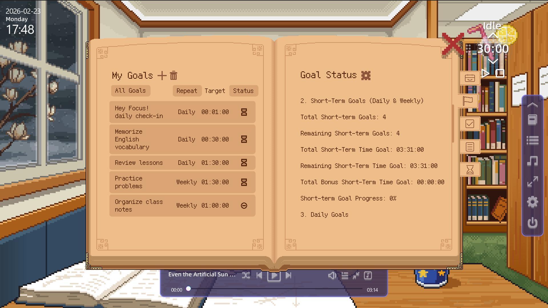 告别单调的提示音!我们为热爱动漫和游戏的女主角“晓柠”实装了超 200 句全日语配音(CV:がび)。在游戏的桌面模式下,晓柠会进入你的电脑桌布,在桌面上陪伴你一起专注。