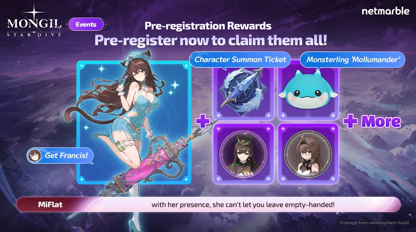 目前游戏已开放全球事前预约。玩家透过官方网站进行预约可获得人气角色“芙兰西斯”;透过 Google Play Store、Apple App Store 完成预约,则可获得“约定的罗盘”召唤券等丰富奖励。