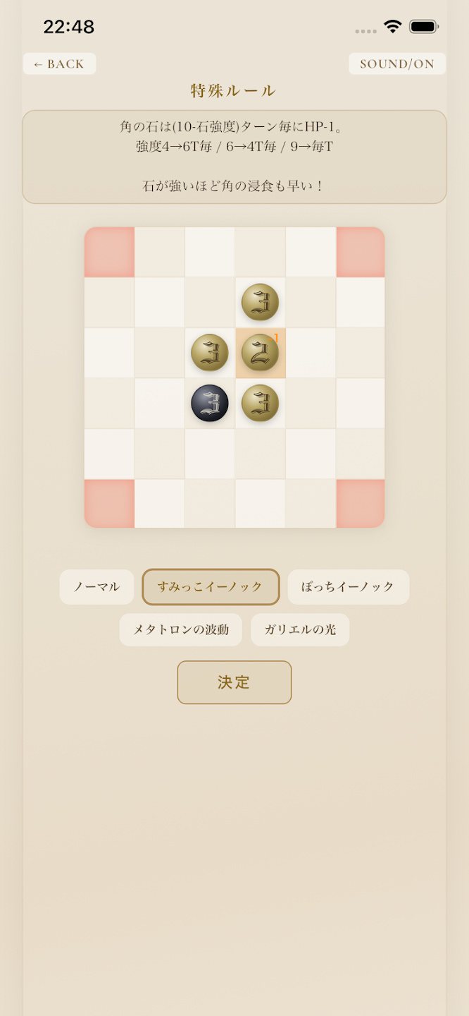 除此之外,本作还准备了多种特殊规则,如角落石头的 HP 会自动减少的“角落以诺克”、累积能量后可可自由放置石头的特殊能力“孤单以诺克”等等。