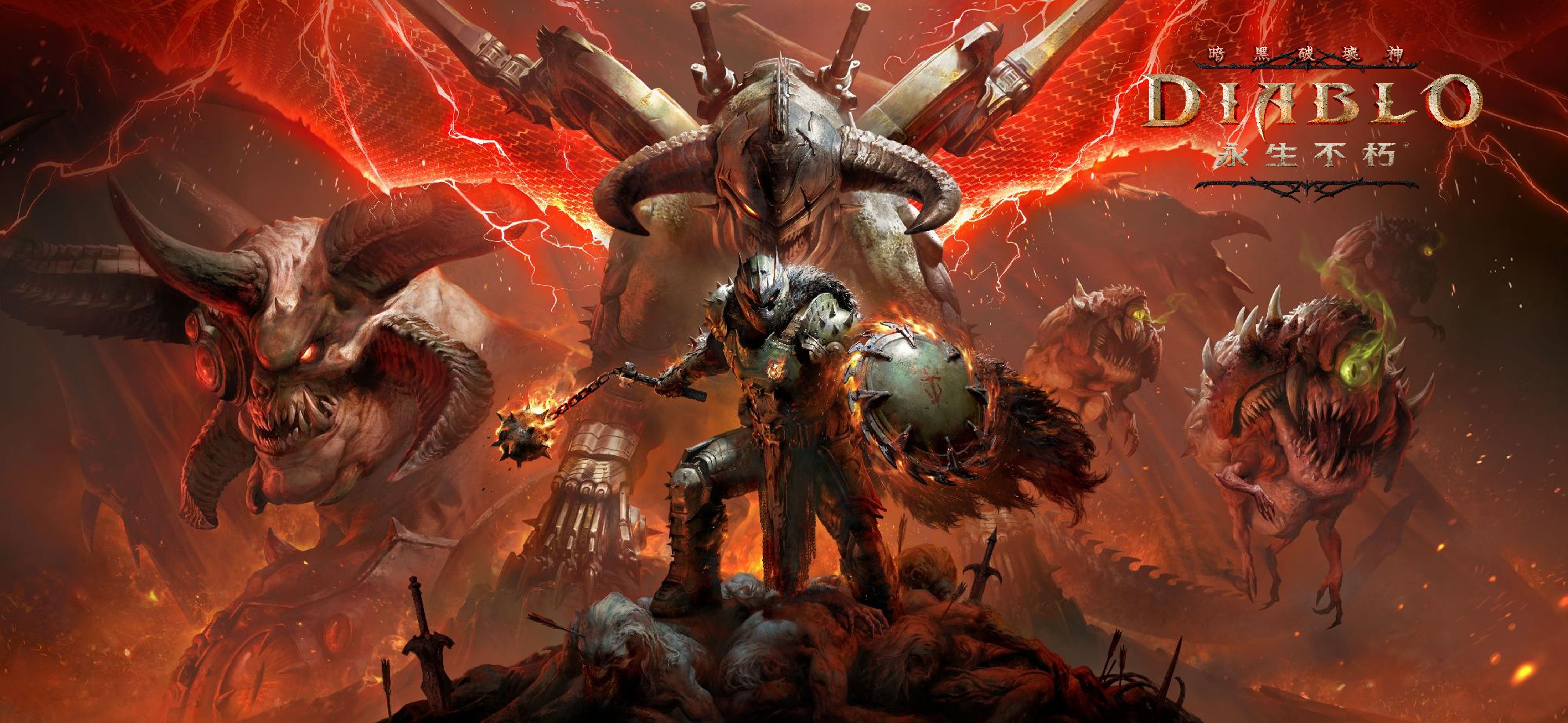 毁灭战士之祸:以《毁灭战士》标志性的残暴和气势,重新构思《暗黑破坏神 永生不朽》的生还者之祸模式。玩家将可使用毁灭战士本人的能力和经典武器,包含盾锯、恐惧之锤和超级霰弹枪等专为积极进攻和控场而设计的配备。