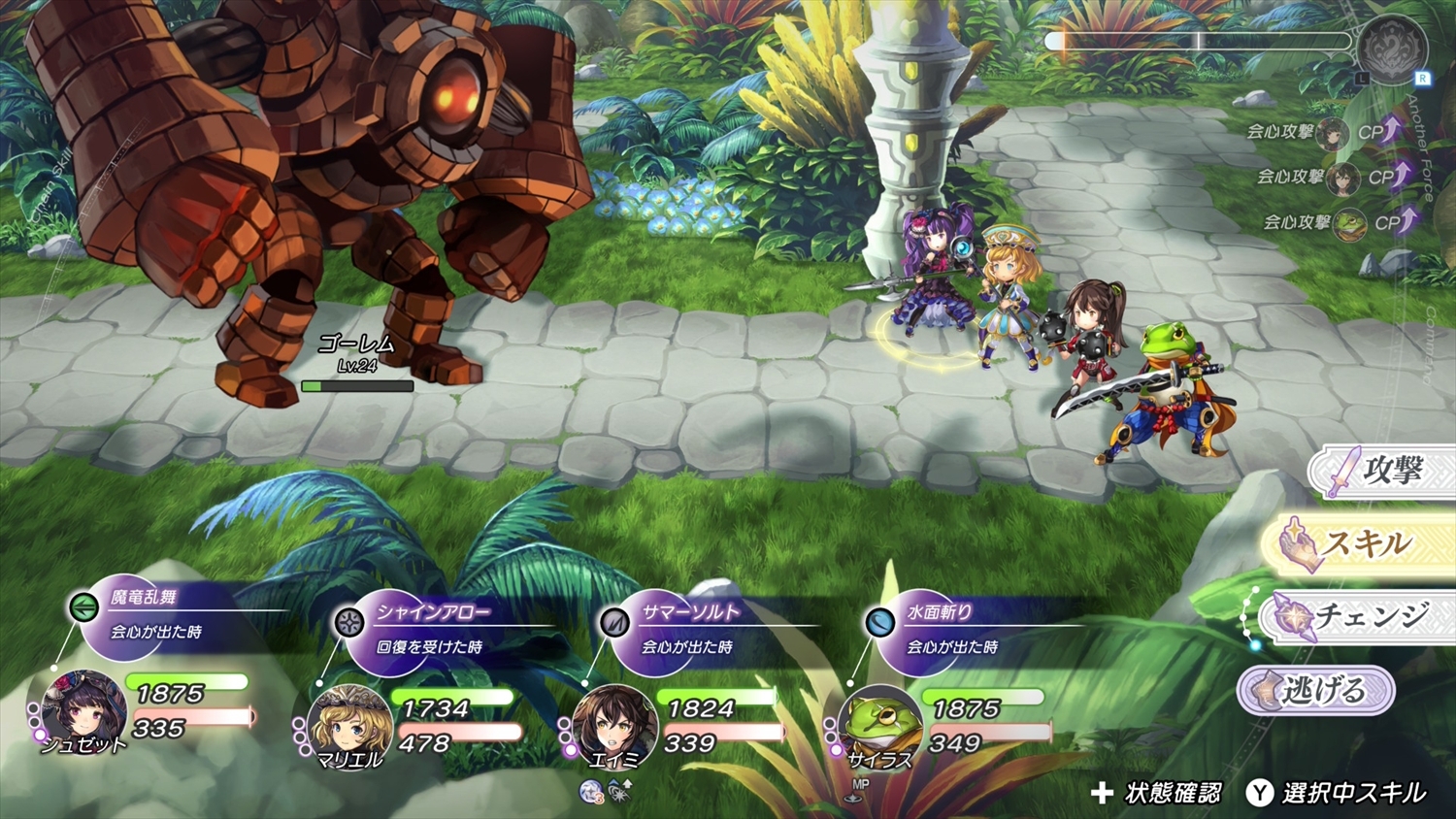 为了在战斗中取得优势,首要关注的是各角色可设定的“连锁技能(Chain Skill)”。当达成如“针对敌人弱点”、“触发暴击”、“发动无属性攻击”等条件时,会累积 CP(连锁点数),累积至一定数值后将自动发动连锁技能。CP 在战斗结束后仍会保留,因此请积极累积。