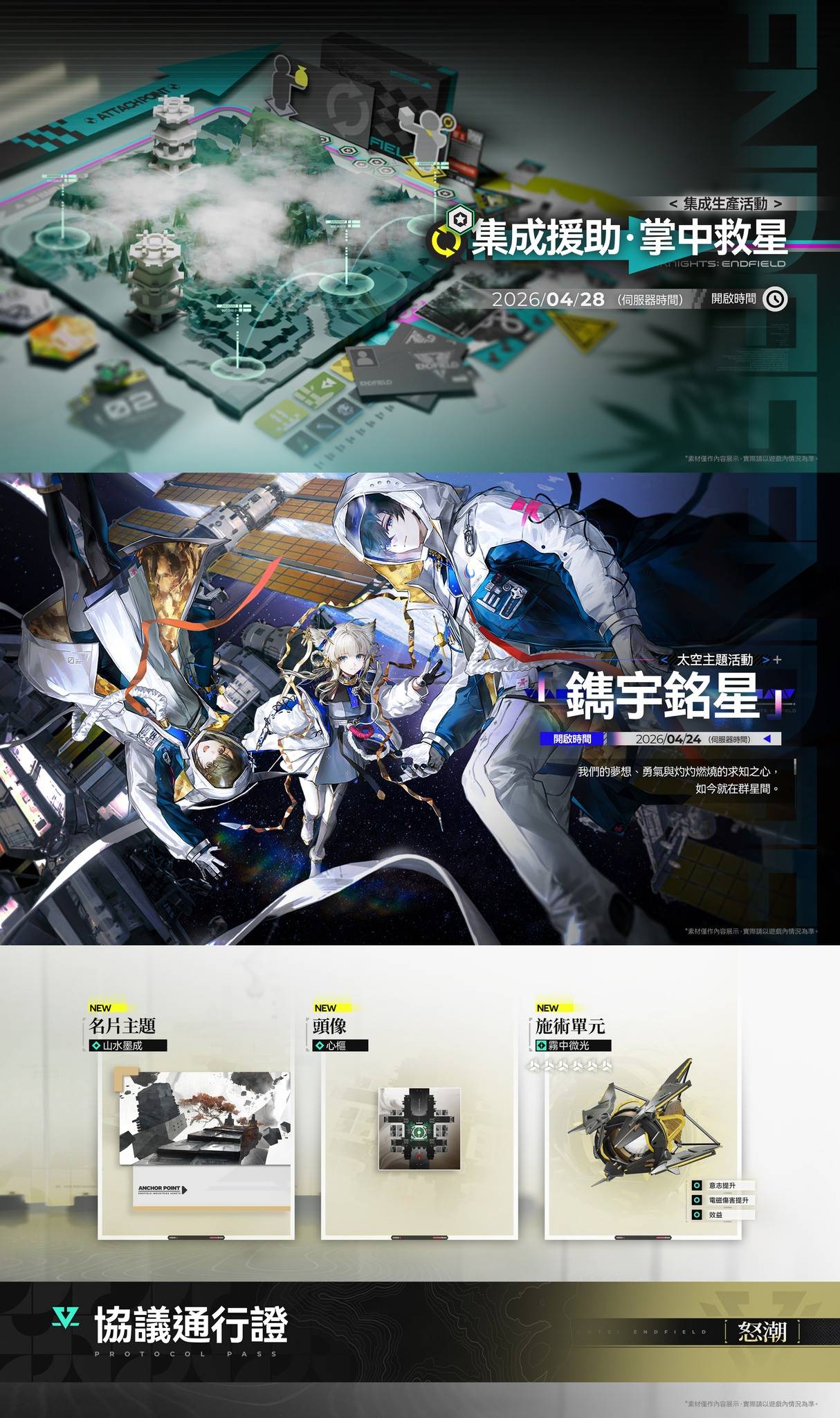 未来我们会在官方自媒体帐号陆续更新《明日方舟:终末地》“春晓时”版本的相关资讯与情报,请持续追踪我们。