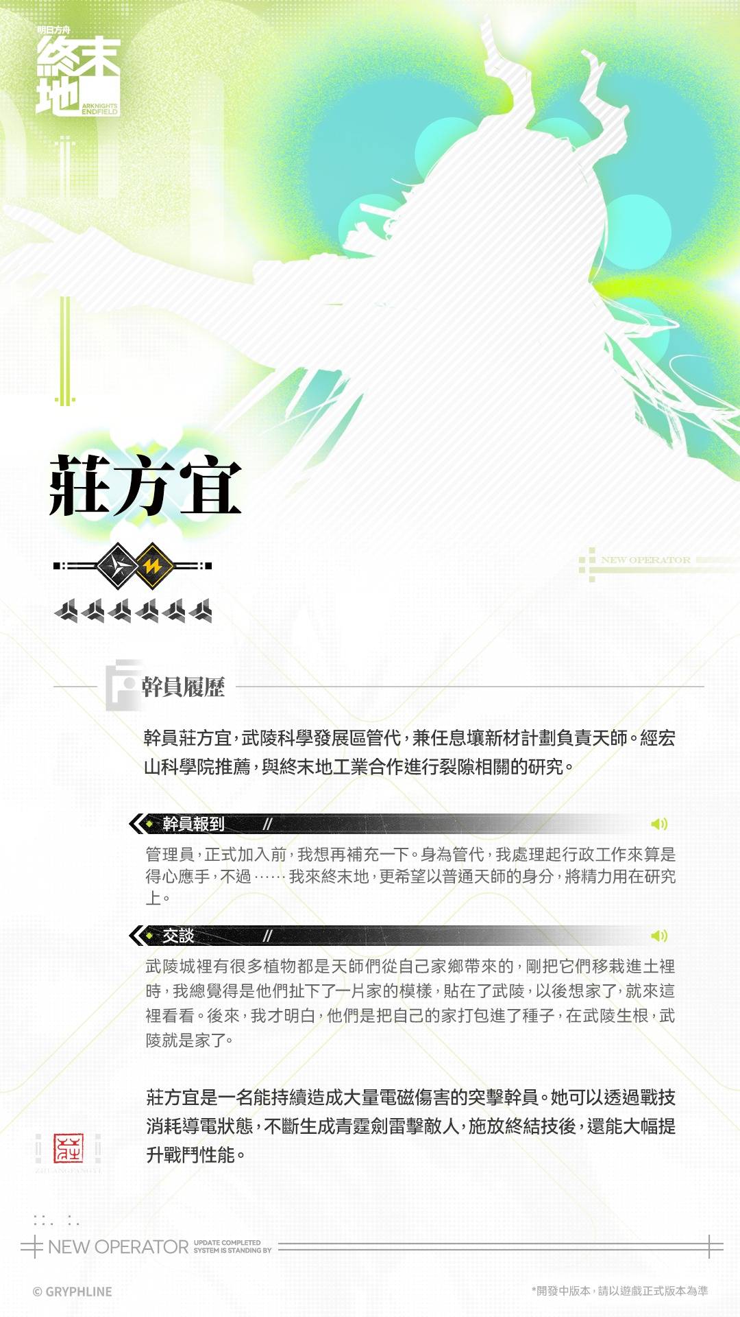 [游戏][资讯][手游]《明日方舟:终末地》核心章节“春晓时”版本PV&武陵城天师“庄方宜”登场!