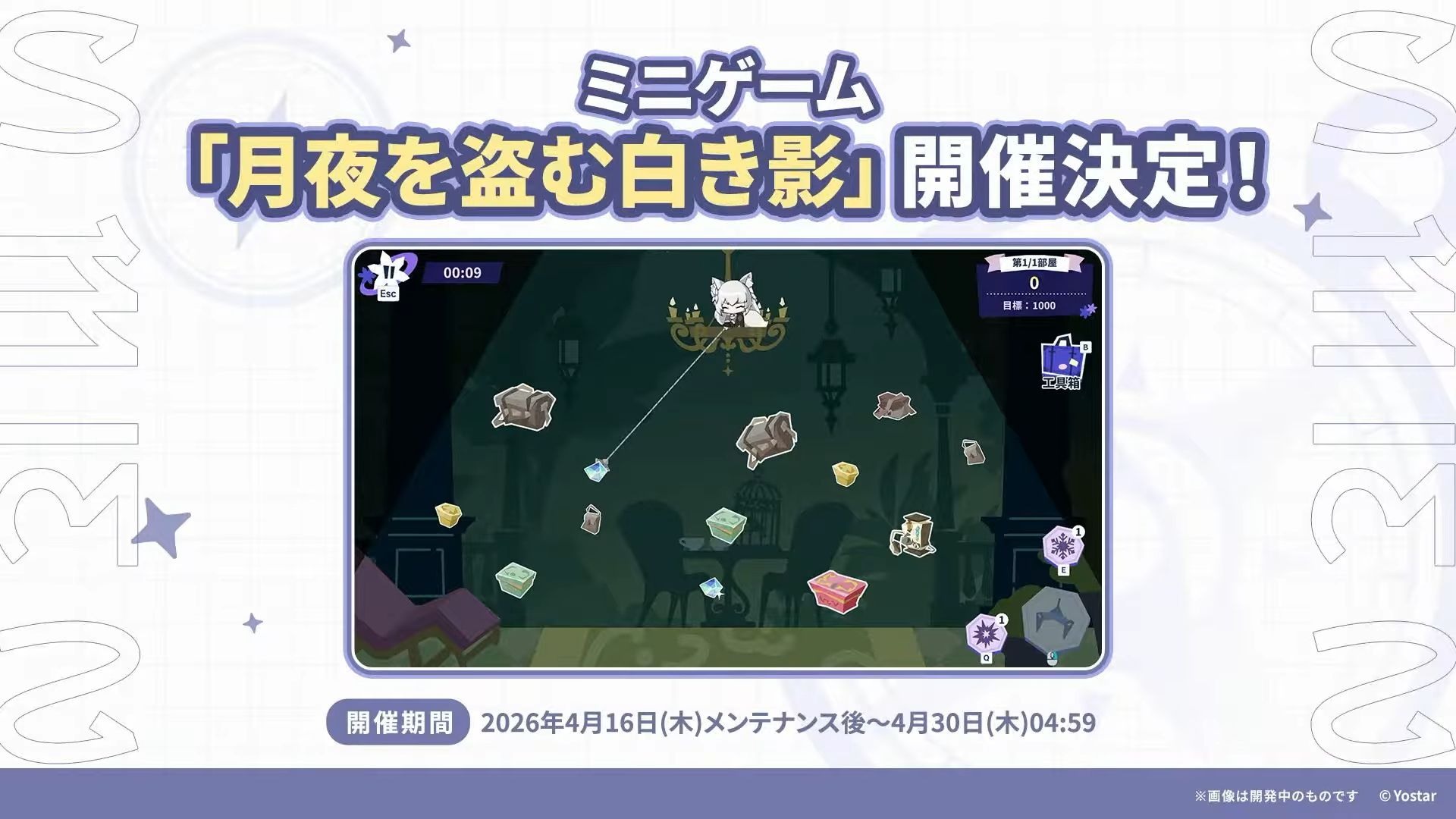 迷你游戏“月华窃梦”与“命运星牌局”也确定举办,两者同样将于 4 月 16 日维护后举行至 4 月 30 日。