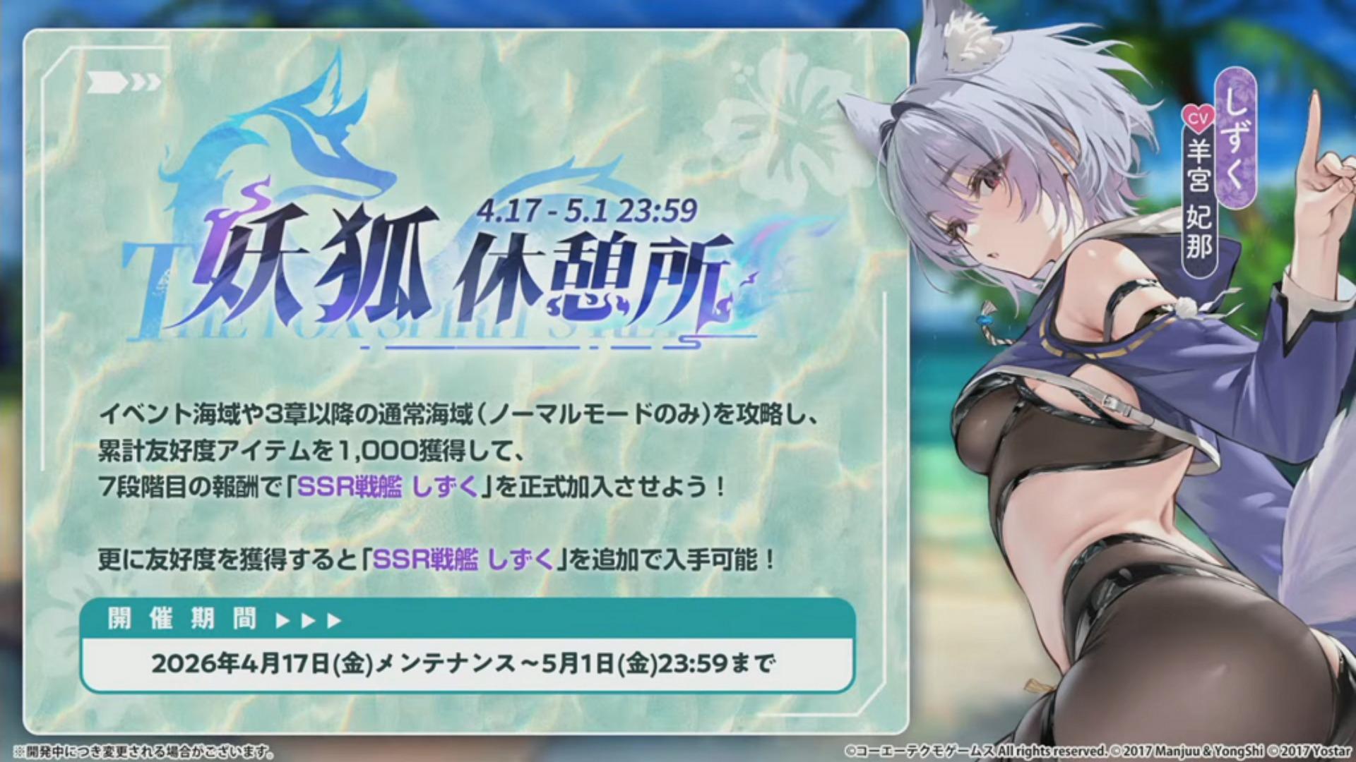 由上海悠星的日本子公司株式会社 Yostar 所代理的即时模拟海战游戏《碧蓝航线(アズールレーン / AzurLane)》〈日版〉(iOS / Android)在 04/13 的官方直播中公布了 04/17 将展开与《生死格斗:沙滩排球维纳斯假期(DEAD OR ALIVE Xtreme Venus Vacation)》〈日版〉(PC DMM gameplayer / Web / Johren)的合作活动,同时开放合作舰船以及换装。
