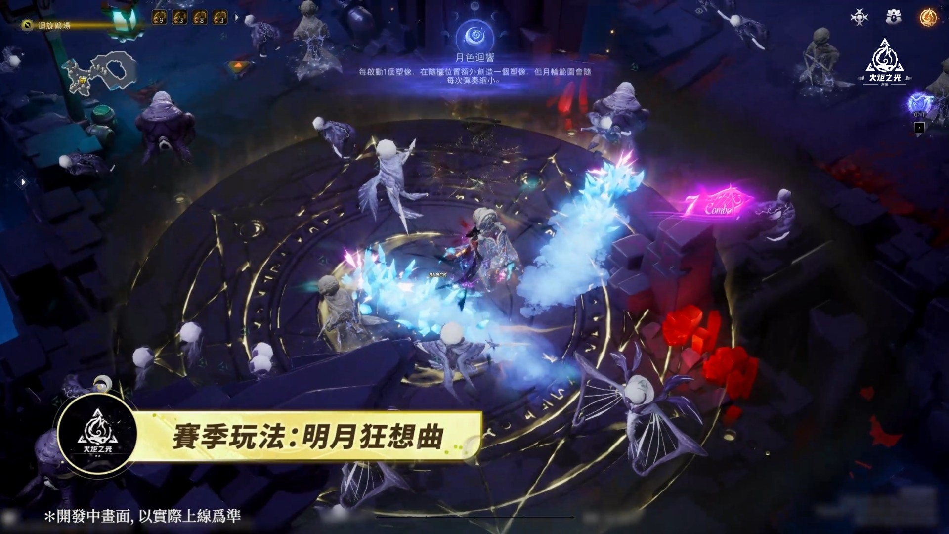 SS12 赛季玩法“明月狂想曲”将回归直接的局内刷图玩法,玩家可在异界地图中遭遇月石塑像群,使用赛季互动按钮弹奏月轮将范围内的塑像唤醒,击败它们即可获得掉落物,每一次性唤醒的塑像越多,能给予更高的掉落数量加乘。赛季玩法除拥有多种随机事件变化改变游玩节奏外,玩家还有机会遇到稀有的“狂想曲”事件。“狂想曲”不只可以改变赛季玩法的游玩逻辑,还能带给玩家更多的掉落奖励。