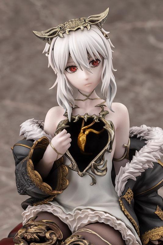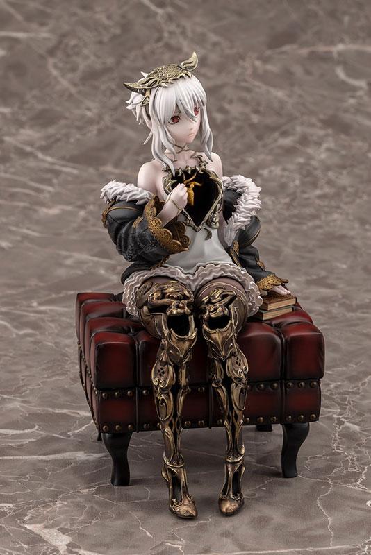 本商品出自游戏《CODE VEIN 噬血代码 II》,将角色“露・马格梅尔”以 1/7 比例模型立体化。由寿屋推出的涂装完成品模型,再现了角色单手执书、放松坐在古董圆凳上的姿态。商品包含本体及专用台座,胸口与腿部的空洞、半颗心脏等特征细节忠实呈现。心脏部分采用珍珠与金属涂装,金继修补处则依部位巧妙分色,营造高级质感。本品比例为 1/7,全高约 180mm(含台座)。敬请留意相关购买注意事项。