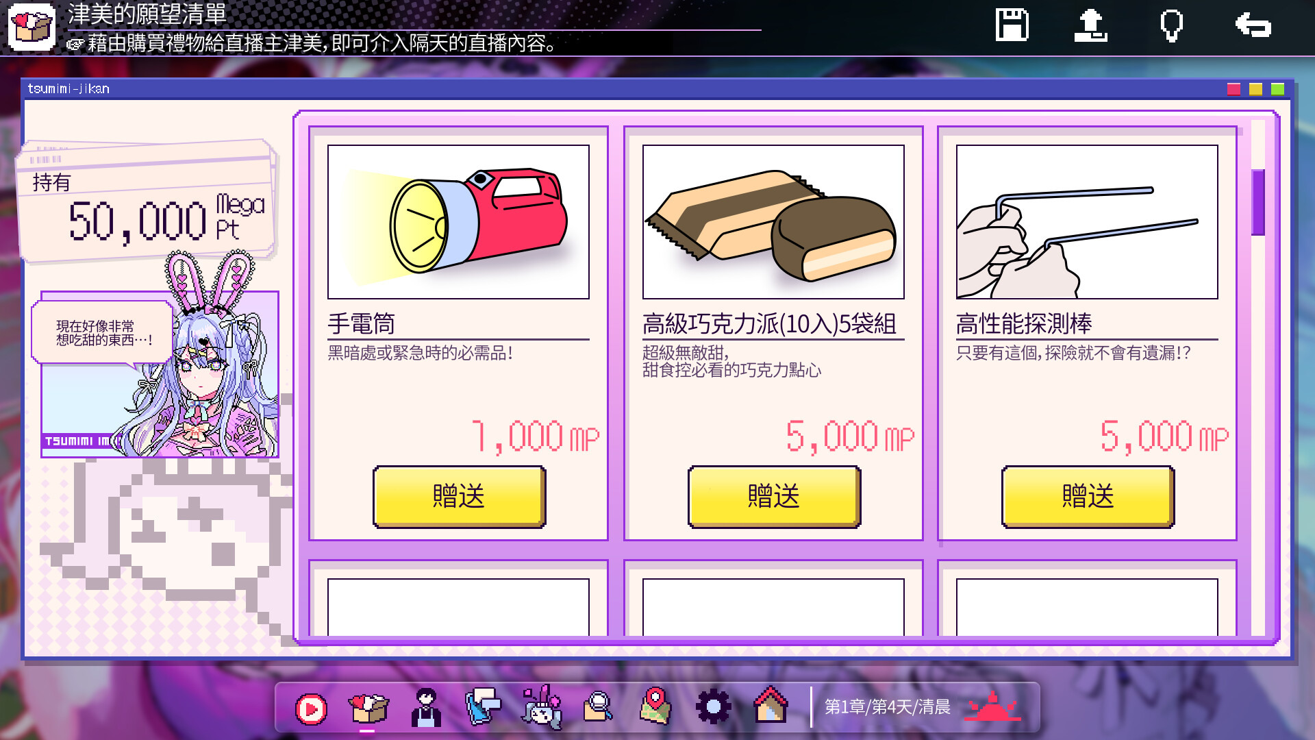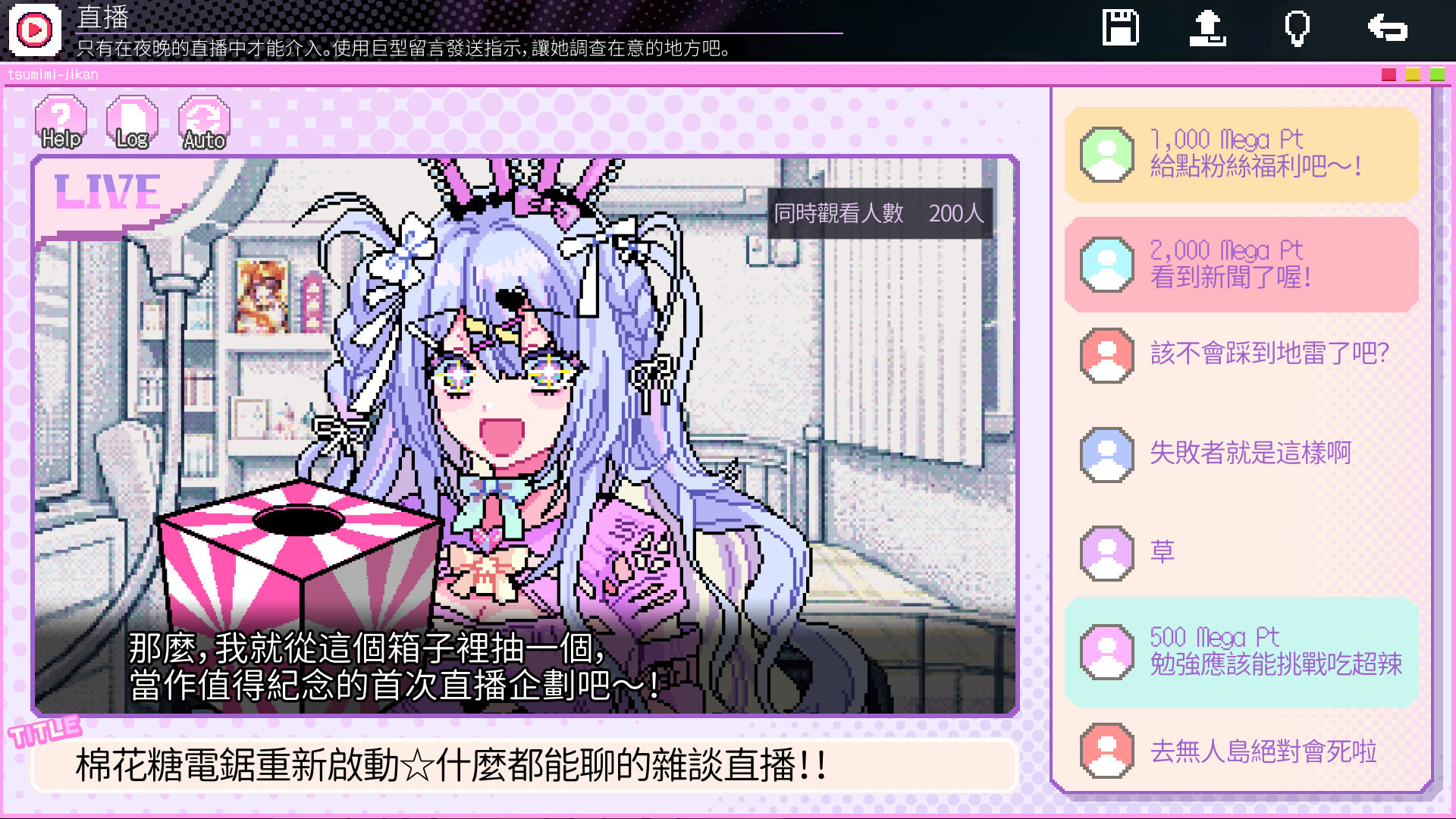 游戏故事描述偶像直播主“真白”失踪了,身为偶像组合“棉花糖电锯”的成员“津美”,一边为失踪的真白担忧,一边怀抱著登上偶像最高点的梦想,每天继续著直播活动。玩家将以观众身份介入“津美”直播,有时改变故事的走向或来搜集线索,为揭开真相而努力。