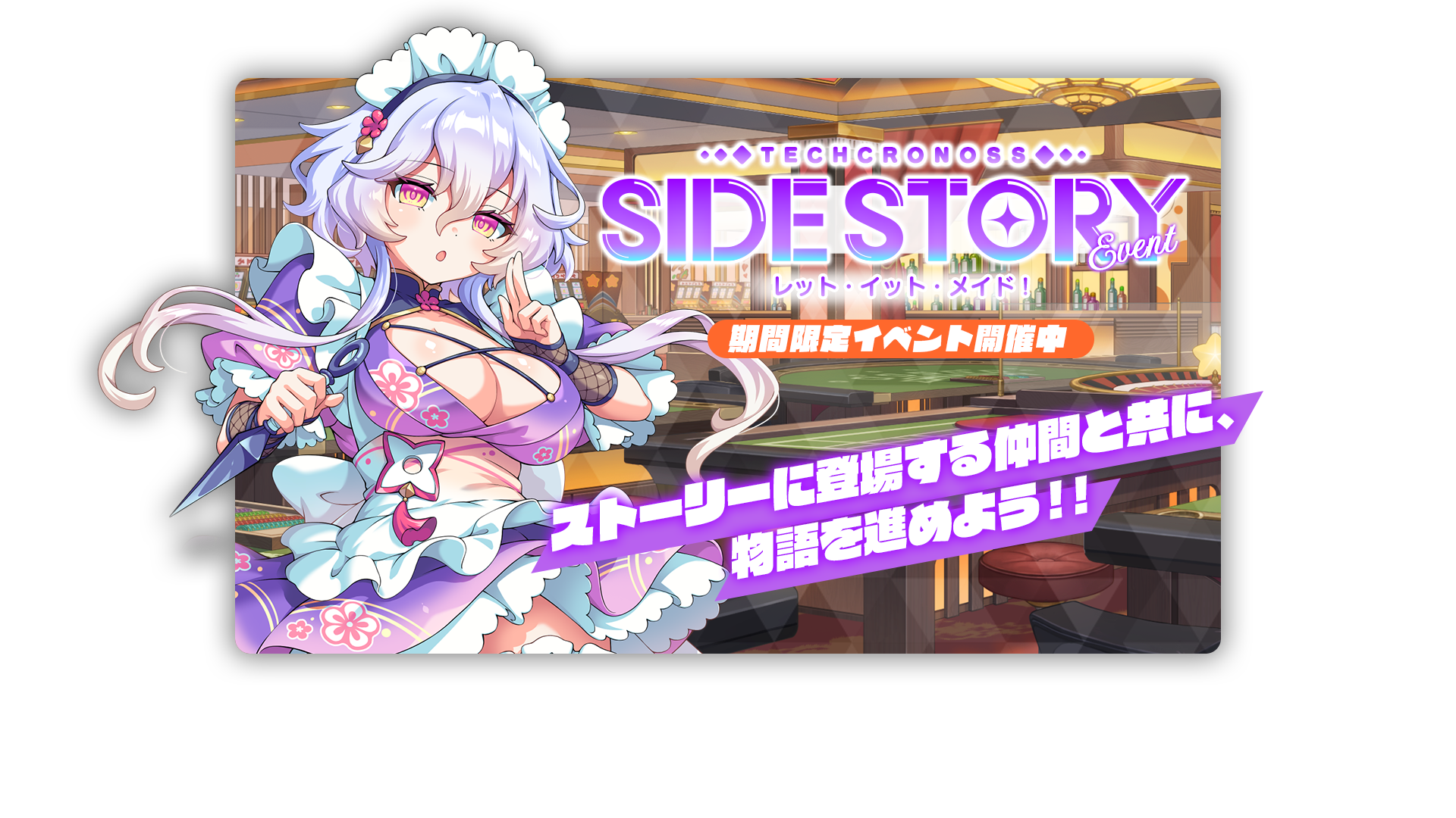 由 Techcross 股份有限公司出品,并由前身为 DMM GAMES 事业部门的 EXNOA 所负责营运集结了 T 社人气最高的三款游戏《神姬计划(神姫 PROJECT)》(Web / iOS / Android)、《妖怪大乱斗(あやかしランブル!)》(Web / iOS / Android)以及《传奇四叶草~Legend Clover~(れじぇくろ!~レジェンド・クローバー~)》(Web / iOS / Android / PC DMM gameplayer)的跨界美少女角色扮演游戏《泰克罗诺斯(テクロノス)》〈日版〉(Web / PC DMM gameplayer / Android DMM Game Store)04/13 开始了新活动“ Let It Maid! (レット・イット・メイド!) ”,同时开放新卡池。