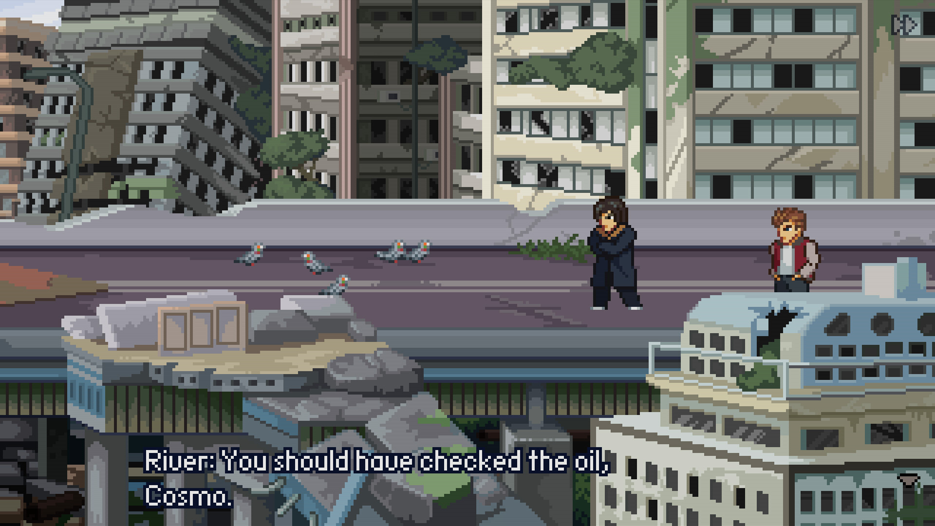 《废墟圣典 #1》是一款动作角色扮演游戏,故事舞台设定在末日后的世界中,两位阔别五年的好友骑上机车,踏上返乡之旅。剧情描述一群年轻的车队在队长突然失踪后分崩离析。五年后,队长最亲近的好友 River 在后末日世界的郊区意外发现了他的踪迹。尽管 Cosmo 看起来没什么改变,但 River 总觉得哪里不太对劲。为了厘清真相,他决定跟著这位昔日的老友。