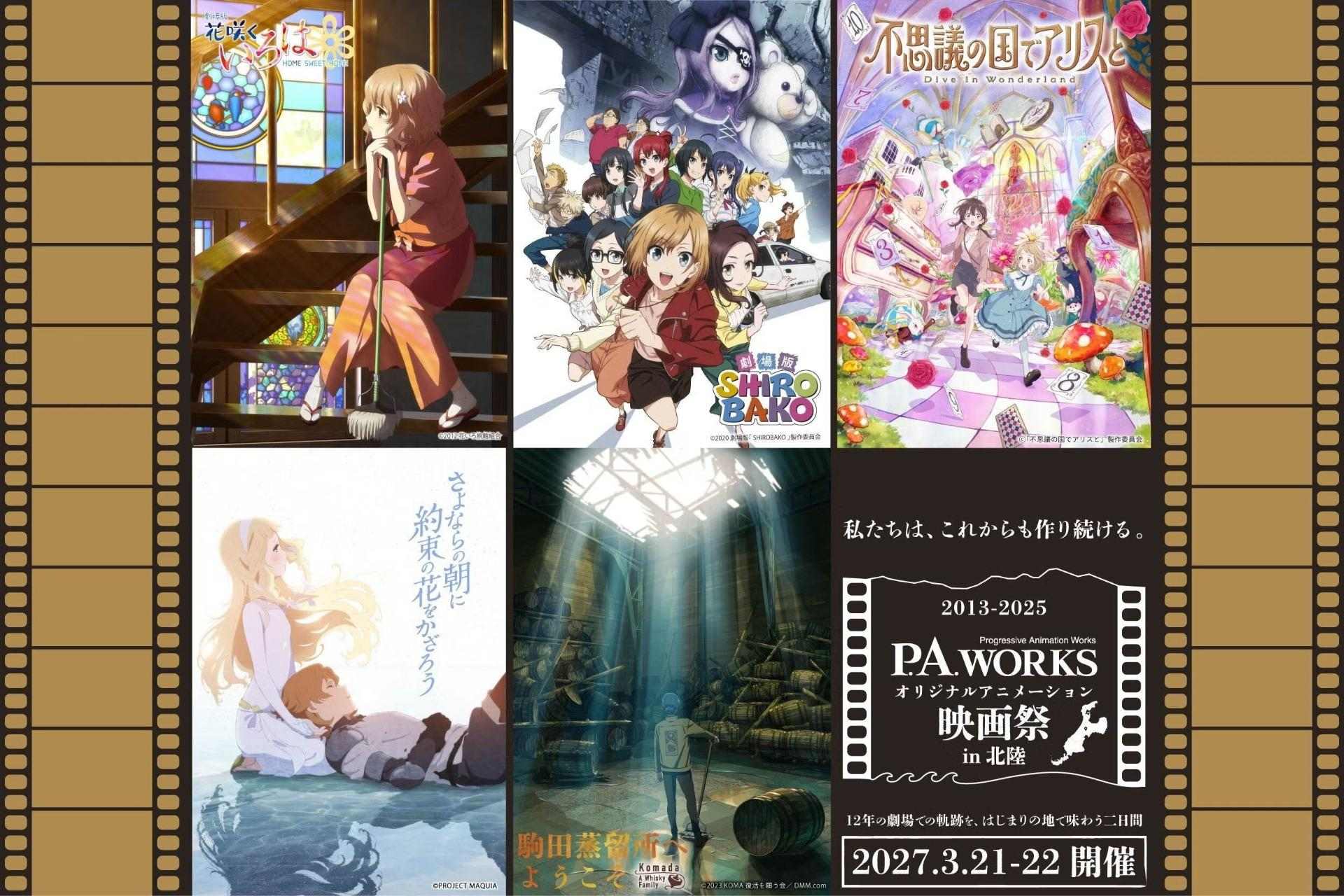 这场电影祭预定于 2027 年 3 月 20 日、21 日在富山县南砺市城端传统艺能会馆“じょうはな座”登场,预计放映《剧场版 花咲くいろは HOME SWEET HOME》、《さよならの朝に约束の花をかざろう》、《剧场版“SHIROBAKO”》、《驹田蒸留所へようこそ》以及《不思议の国でアリスと -Dive in Wonderland-》5 部作品。活动将结合制作团队亲临现场的生评论放映与 teach-in 交流,让观众在大银幕观影之馀,也能直接听到创作端的想法与幕后故事。