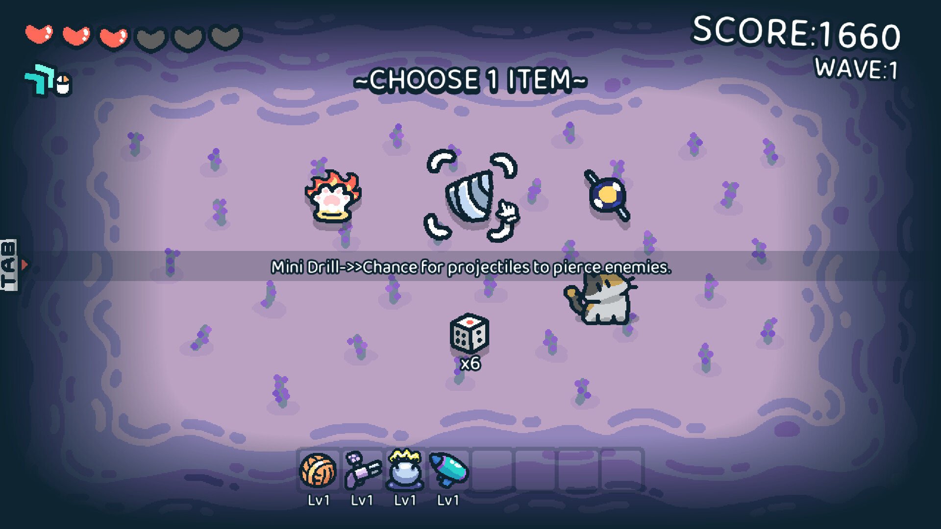 在游戏开始时,玩家可以选择喜爱的猫咪来展开冒险,不同猫咪拥有不同的能力,例如三毛猫具备瞬间移动能力,玩家借由“撸猫”玩法,来对敌人进行攻击;通过关卡后,玩家可以从食物、道具、武器等报酬中进行选择,来提升猫咪的能力或获得新武器,借此打造属于自己的流派。
