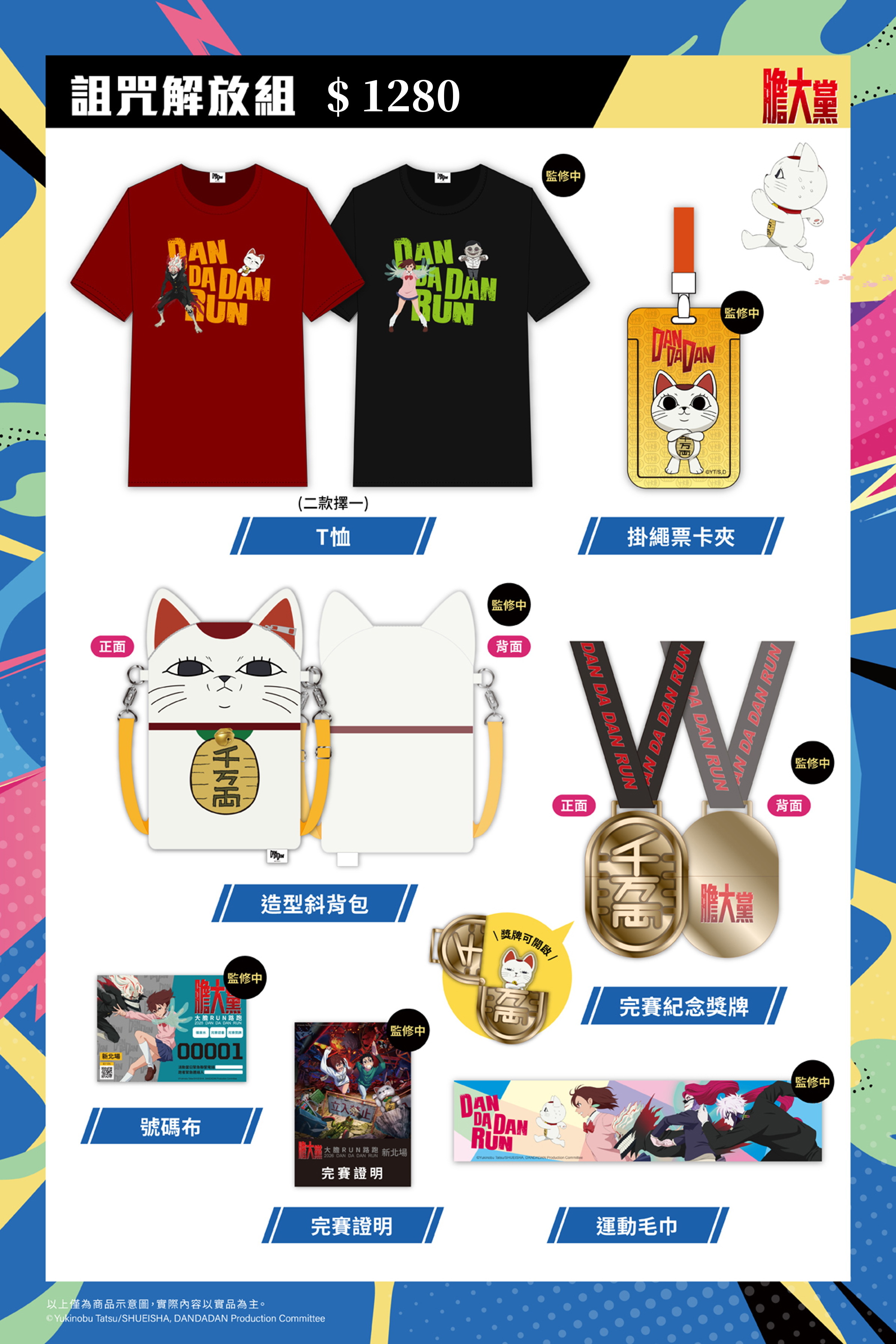 诅咒解放组(售价1280元):挂绳票卡夹、造型斜背包、T恤、号码布、运动毛巾、完赛纪念奖牌、完赛证明