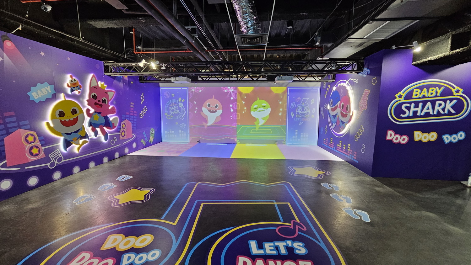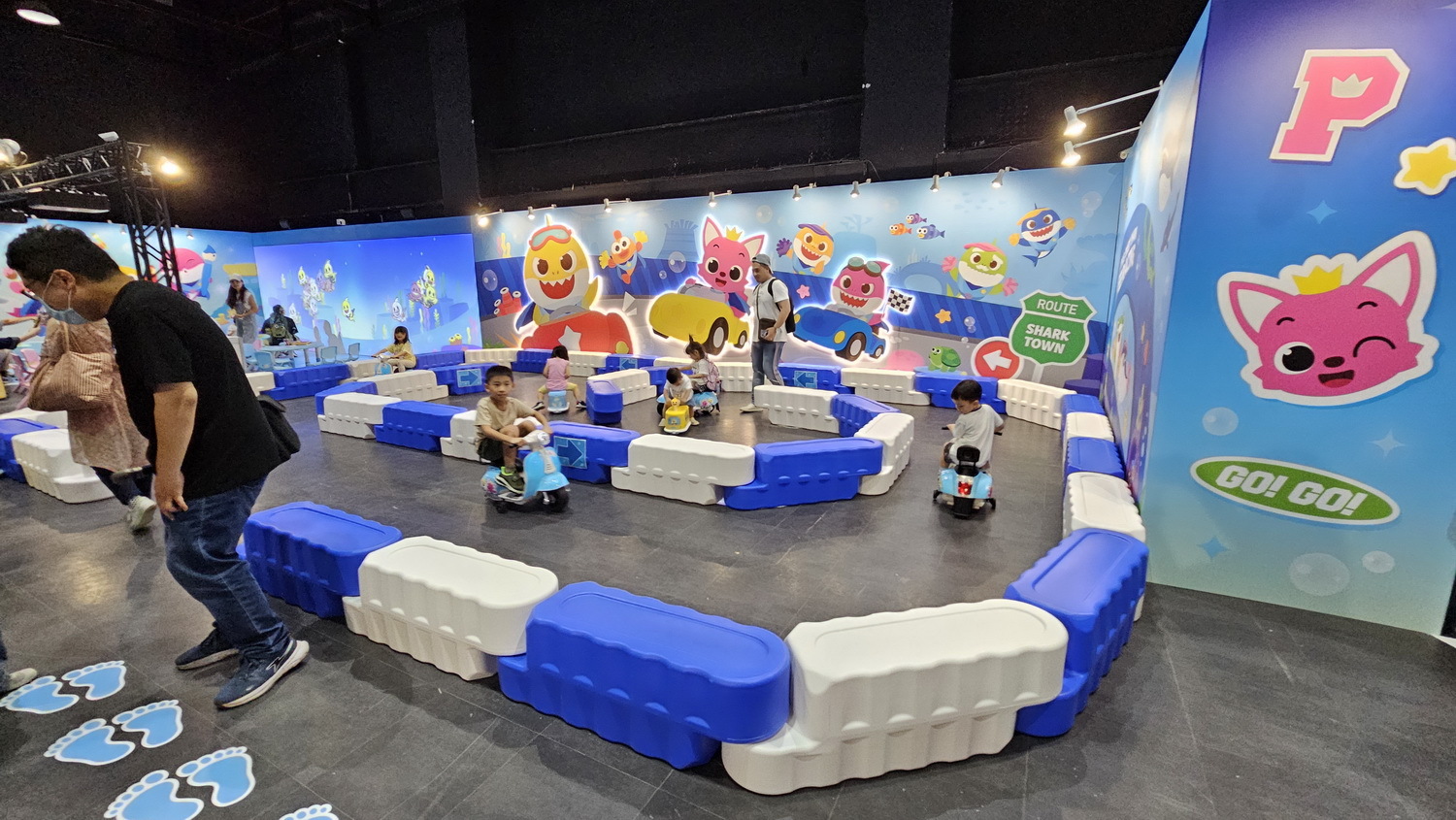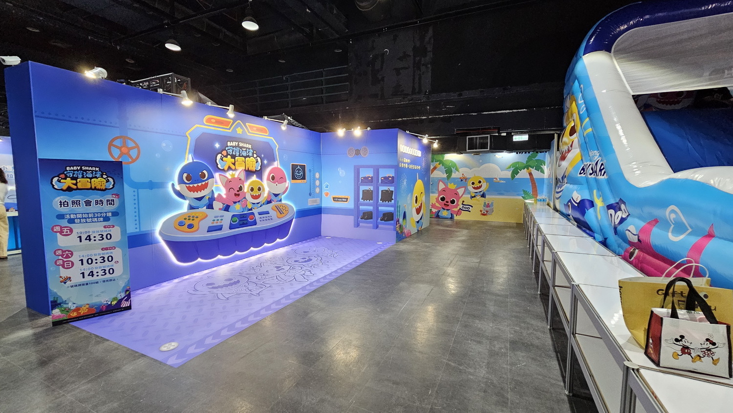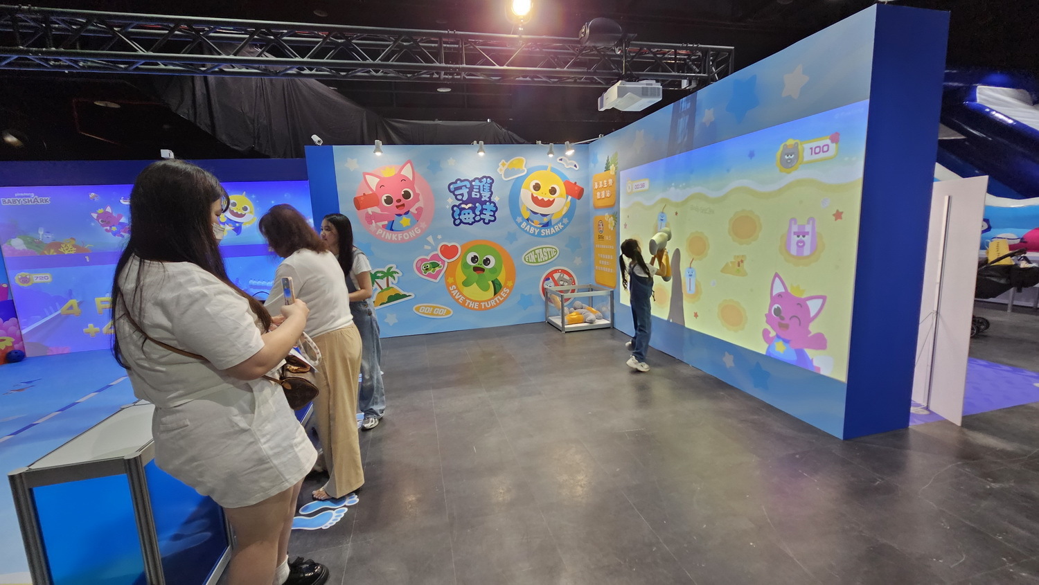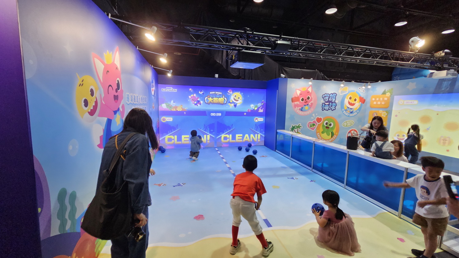 透过Baby Shark 最知名的音乐,展场中必需要的结合耳熟能详的音乐节奏与肢体互动,让孩子在游戏中放电。透过动作模仿与情境引导,强化情绪记忆与学习效果,使教育不再只是知识传递,而是转化为愉快的参与经验,进一步提升亲子互动与展览吸引力。
