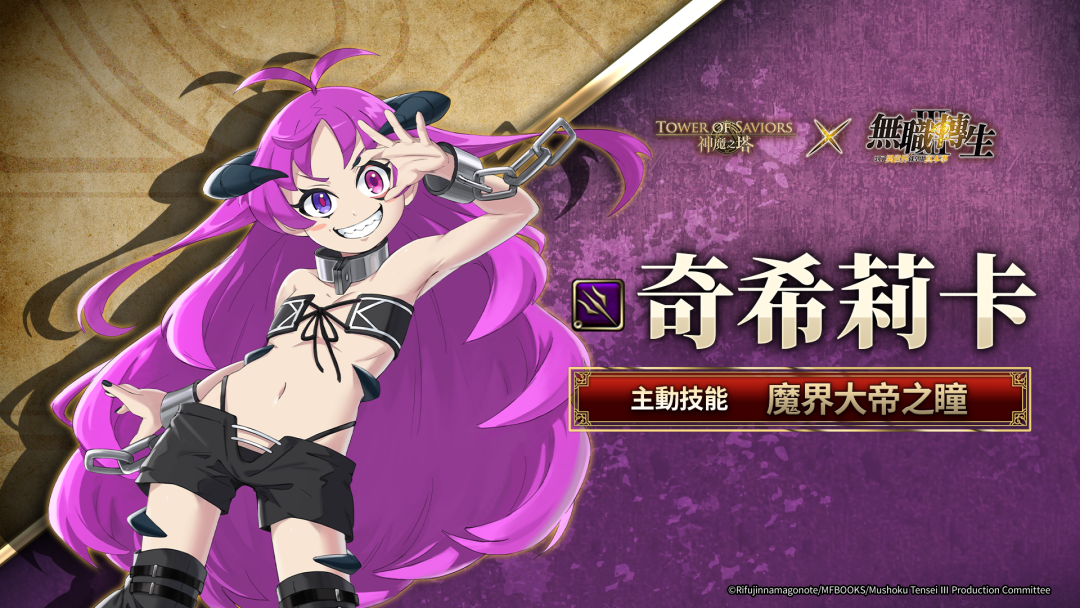 Madhead 宣布,旗下宝石消除 RPG《神魔之塔》将于 4 月 27 日 (一) 维护后,与人气动画《 无职转生 ~到了异世界就拿出真本事~》的第一、二季登场角色展开为期 4 周的全新合作活动。活动期间将推出“无职转生”的合作卡匣、合作关卡以及主题家具;“洛琪希”、“希露菲叶特”或“艾莉丝”更化身全新引导旅伴,陪伴召唤师一同探索未知的前路。