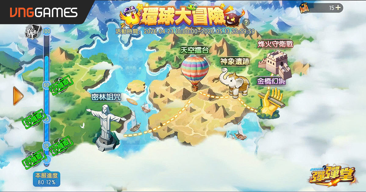 配合本次改版,《弹弹堂 Origin》亦推出多项期间限定活动。4 月 23 日将开放全新伺服器 S68,并同步重启“环球大冒险”与“画卷绘梦”两大玩法,为本次改版中时装、武器与称号框等重点奖励的主要取得途径。其中,“环球大冒险”为全服协力挑战机制,玩家可透过登入与活动取得挑战券进行副本挑战,依队伍累积伤害与全服进度解锁关卡并获得奖励;“画卷绘梦”则为资源搜集活动,玩家透过搜集与消耗画笔即可兑换多样限定奖励。