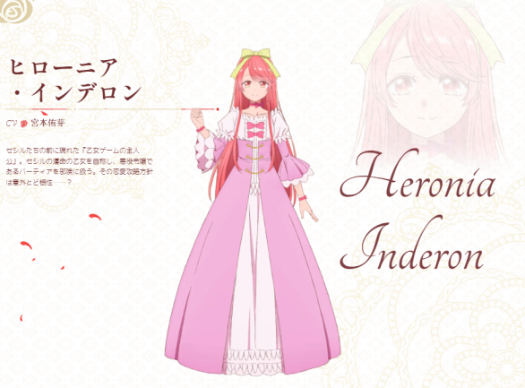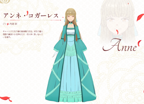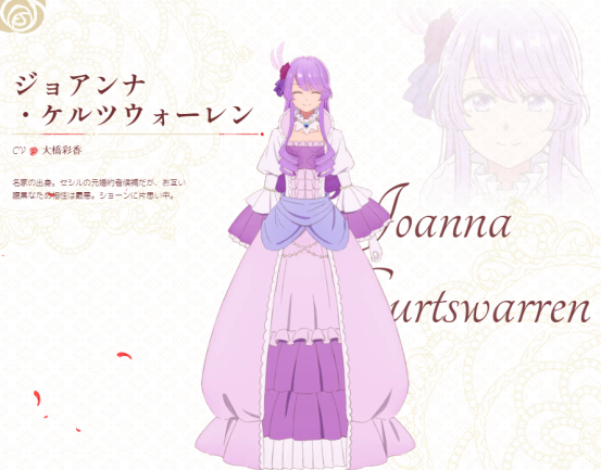 出场声优阵容则包括富田美忧(饰:芭蒂雅)、小林裕介(饰:赛希尔)、井上麻里奈(饰:幼时赛希尔)、宫本侑芽(饰:希罗妮亚)、石井康嗣(饰:诺切斯侯爵)、堀江瞬(饰:尼尔德)、村濑步(饰尚恩)、大桥彩香(饰乔安娜)、佐伯伊织(饰西莉卡)、田丸笃志(饰泽诺)、鬼头明里(饰小黑)…等人。